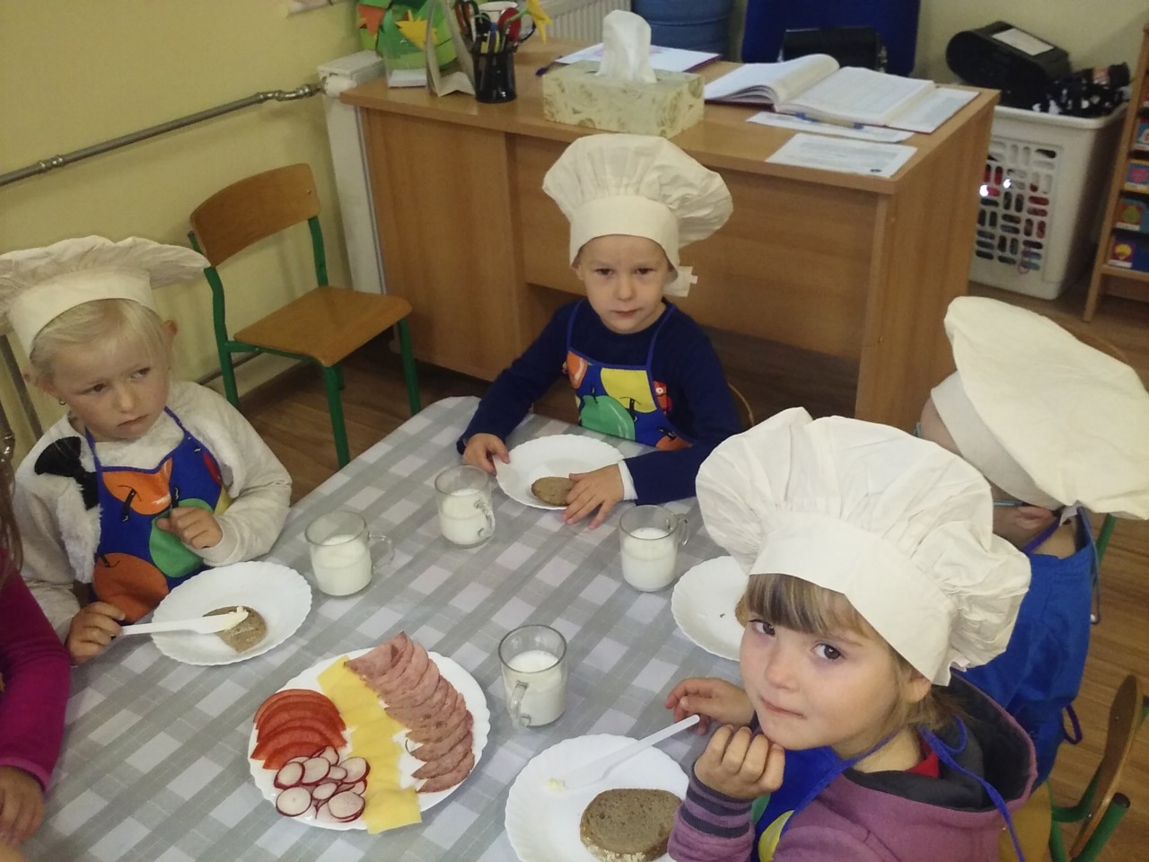 Przedszkolaki z grupy „Tropiciele” robiły samodzielnie pyszne, zdrowe i kolorowe kanapki. Wszystkie dzieci z dużym zaangażowaniem dobierały składniki, aby każda kanapka wyglądała wyjątkowo i kolorowo. Najlepiej smakują potrawy wykonane samodzielnie i to sprawdziło się w naszej grupie. Samodzielnie wykonane kanapki smakowały nawet największym niejadkom.