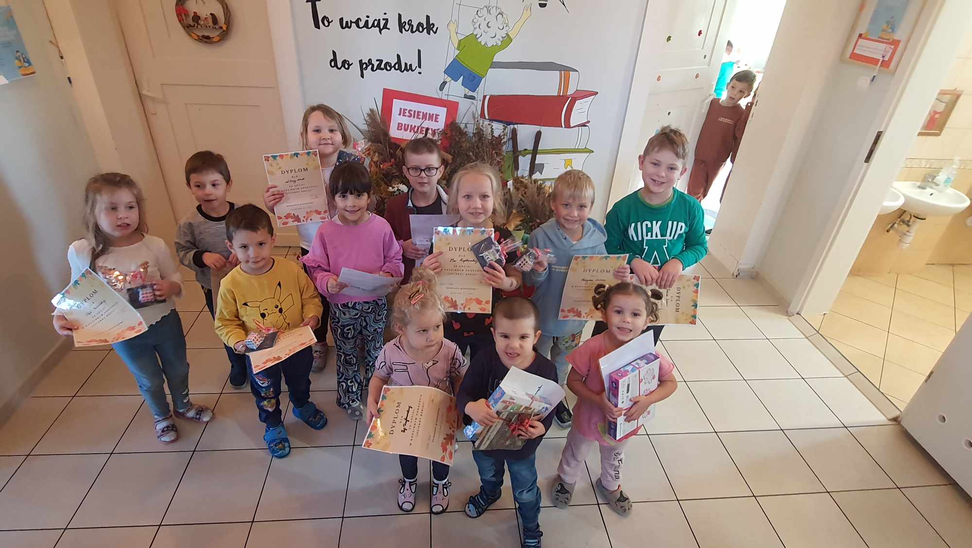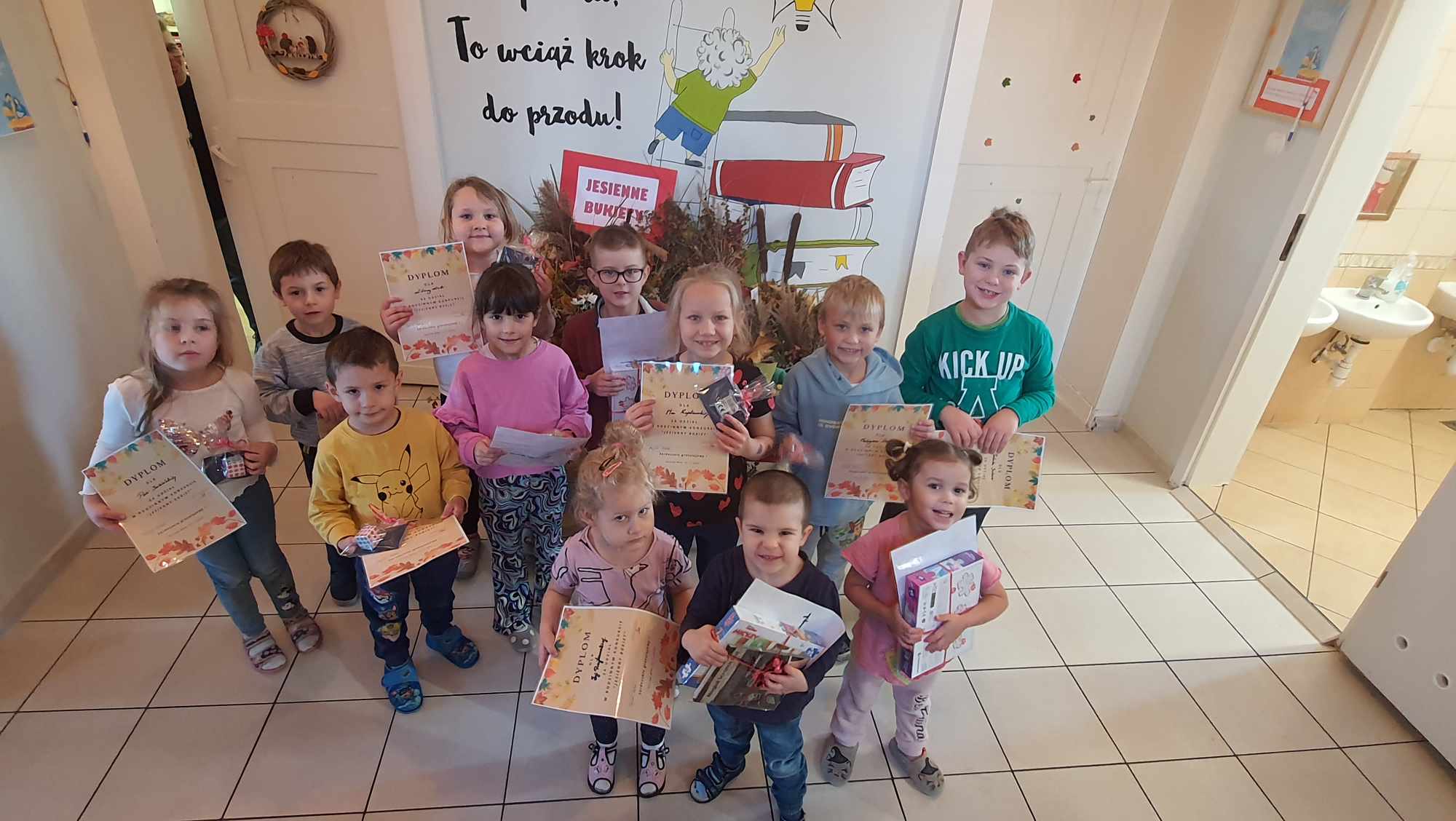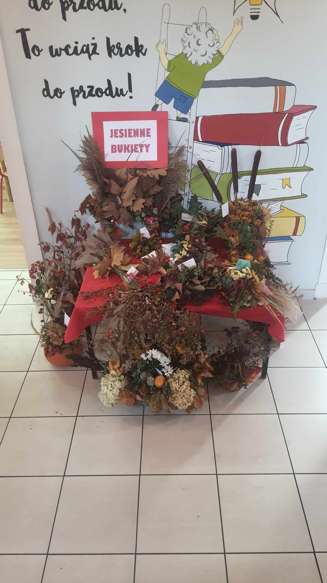 Dziś zostały nagrodzone dzieci, które wraz z rodzicami wykonały jesienne bukiety.