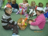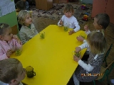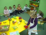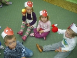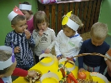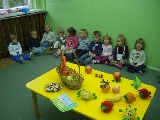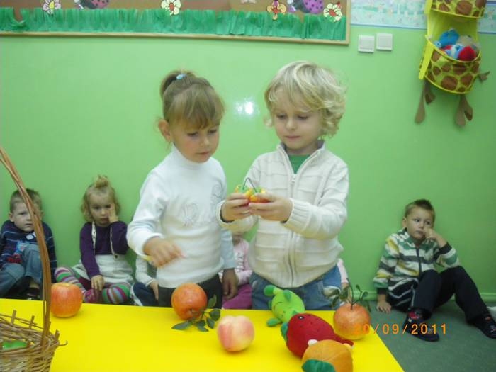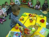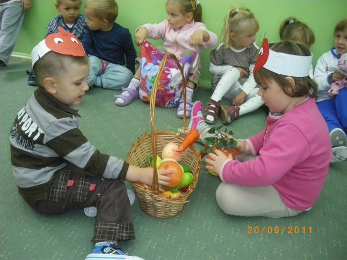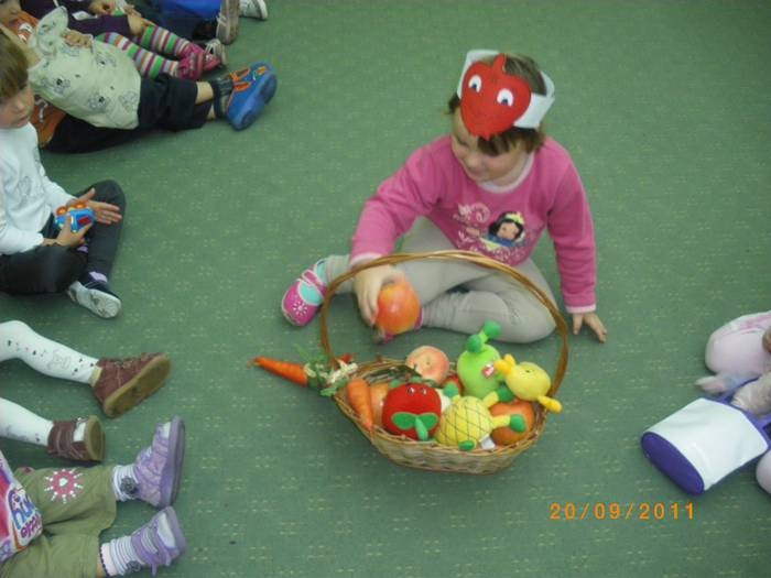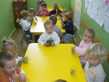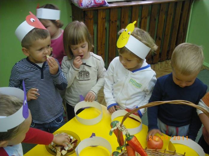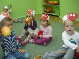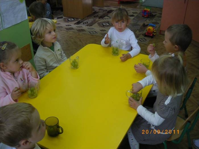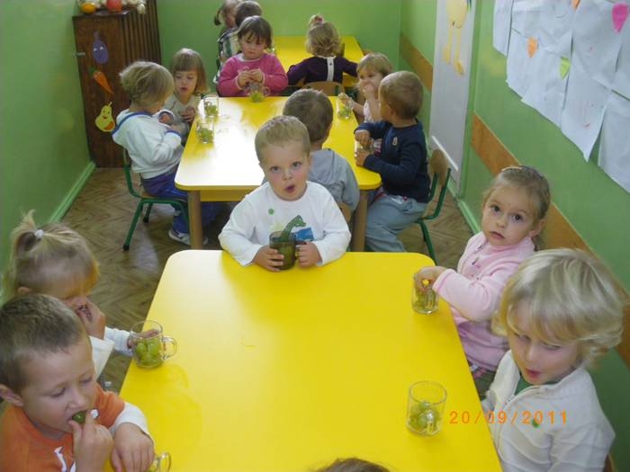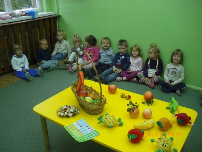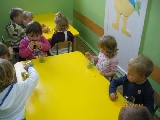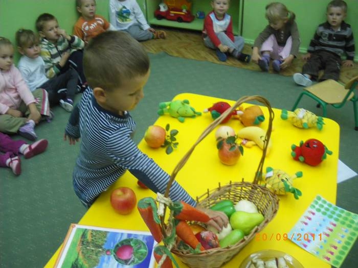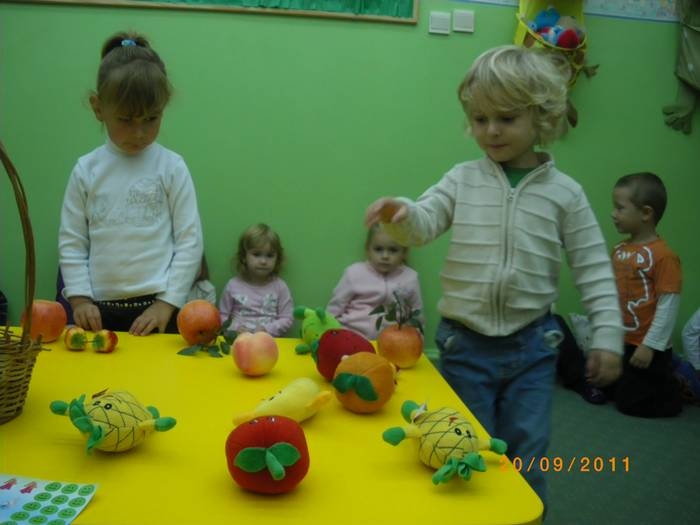 Dzieci z grupy I uczyły się rozpoznawać i nazywać owoce. Określały ich kształt, wielkość i kolor. Miały okazję rozpoznawać owoce dotykiem i smakiem. Maluszki dowiedziały się też o znaczeniu owoców jako źródła niezbędnych dla człowieka witamin. Wszystkim tym zabawom towarzyszyły piosenki oraz prace plastyczne, które pozwalały nam utrwalać nowe wiadomości. My wiemy, co pyszne i zdrowe! Polecamy!!!