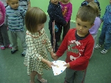 W dniu 30.09. 2011 w naszej grupie świętowaliśmy Dzień Chłopaka. Dziewczynki wręczyły swoim kolegom słodkie upominki oraz laurki (serduszka), które samodzielnie wykonały. Następnie odbyły się zabawy i piosenki przy których wszyscy radośnie się bawili. Nie brakło także w tym dniu słodkiego poczęstunku dla wszystkich dzieci.