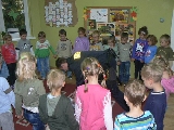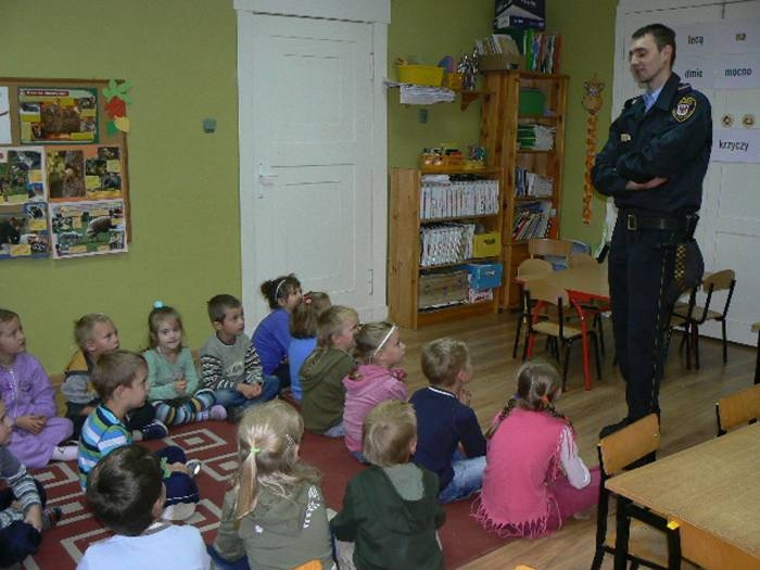 12 października grupę IV odwiedził Strażnik Miejski. Przypomniał jak segregować śmieci, sprzątać po swoim pupilu- psie, jak bezpiecznie zachować się przy przejściu dla pieszych oraz z jakich telefonów korzystać, by wezwać pomoc.