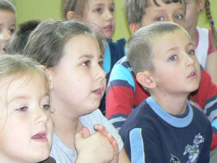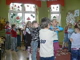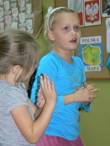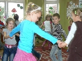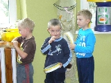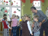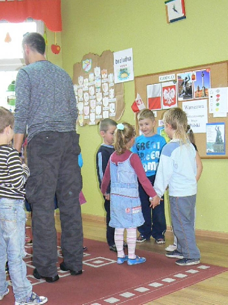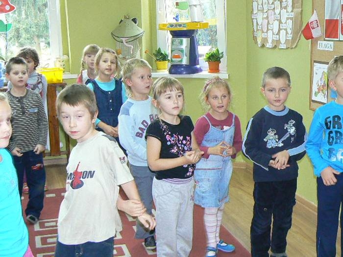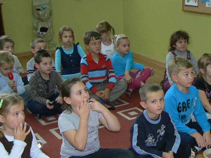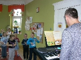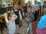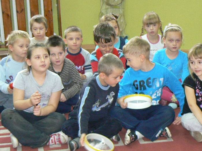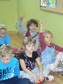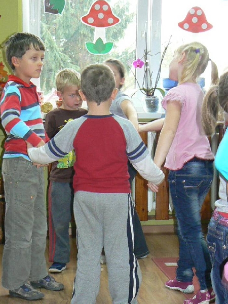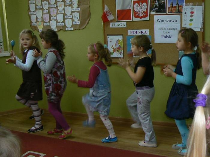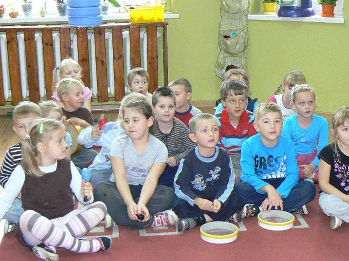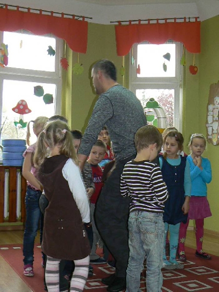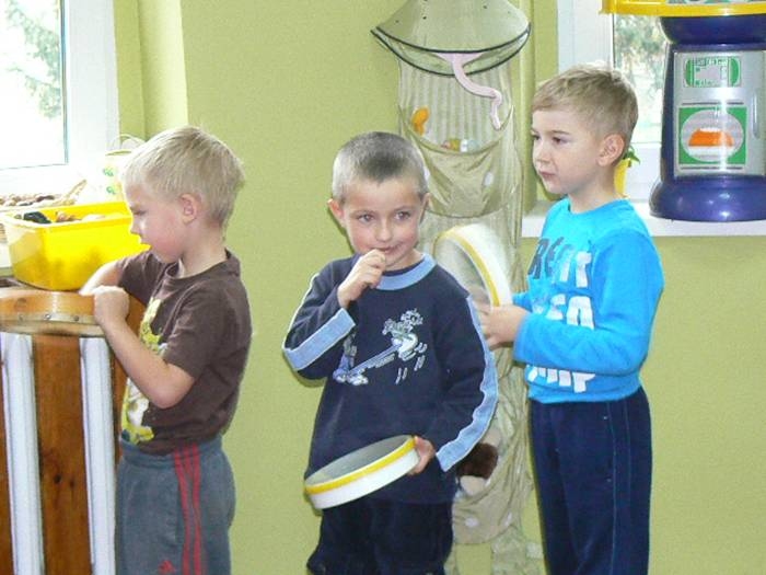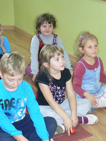 Skoki, podskoki, dużo śmiechu i wesołej zabawy jest przy muzyce na zajęciach rytmicznych u pana Adama. Przedszkolaki przygotowują piosenkę o jesiennych liściach na przedstawienie dla Rodziców. Pod bacznym okiem instruktora poznają także instrumenty i ich rodzaje.