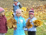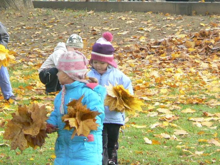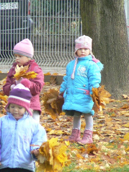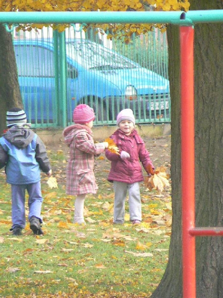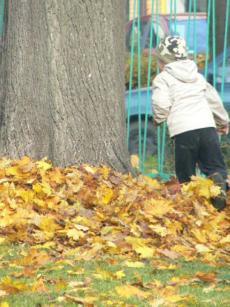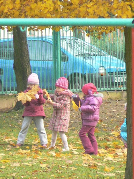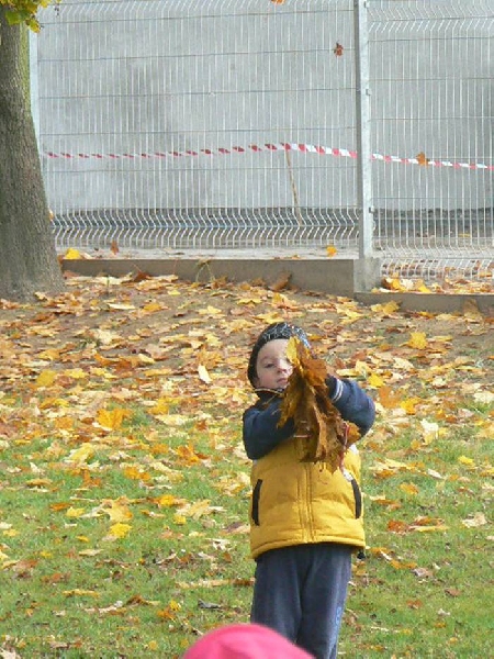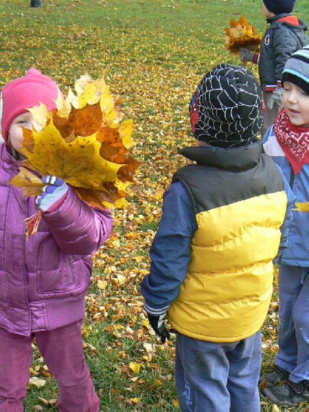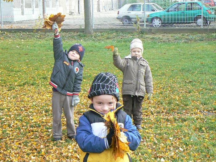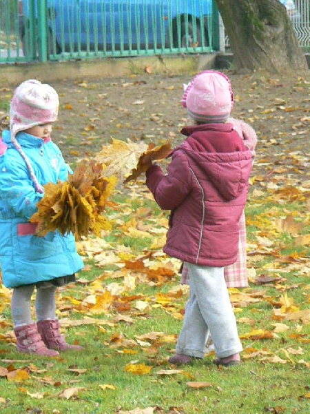Teraz, jesienią gdy liście spadają z drzew a słońce mocno świeci, nie ma lepszej zabawy niż zbieranie liści. W naszym ogrodzie przedszkolnym jest ich bardzo dużo. Teraz dzieci z grupy II mogą skakać po liściach, zakopać się w nich i bawić w chowanego, rzucać do góry i obserwować jak spadają. Możliwości jest wiele.