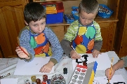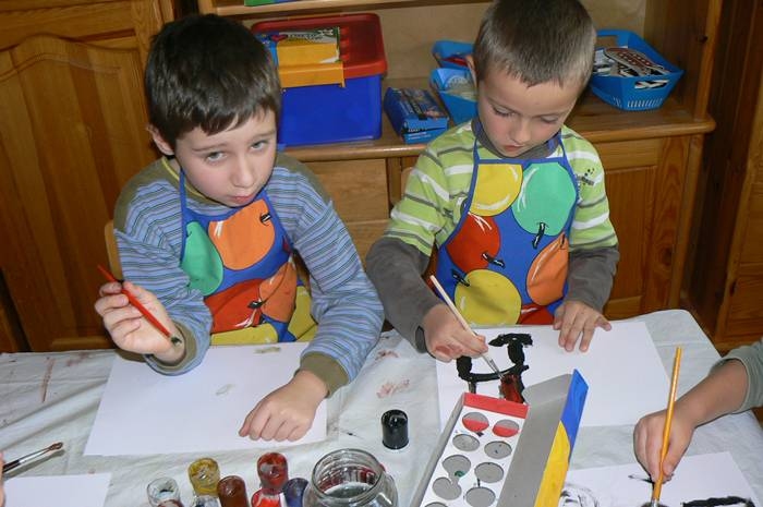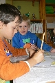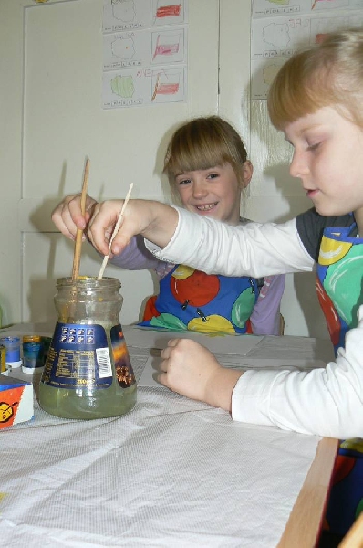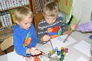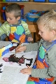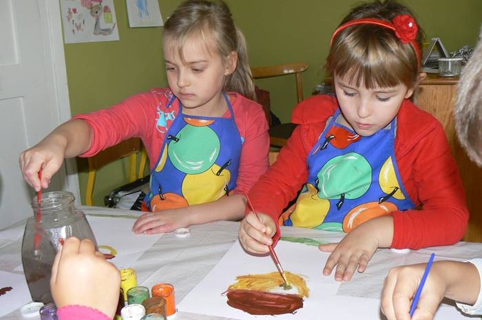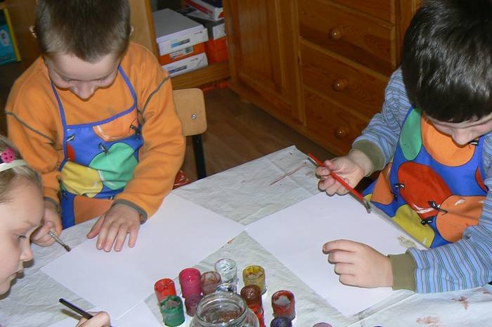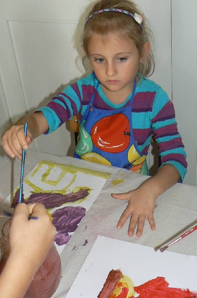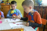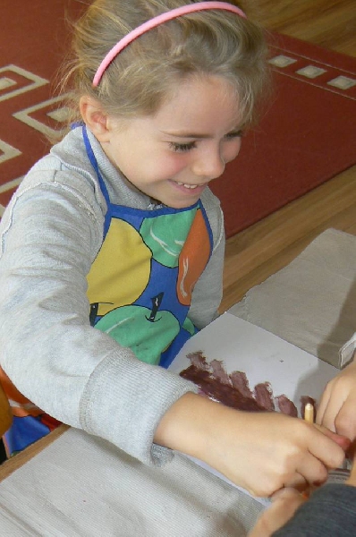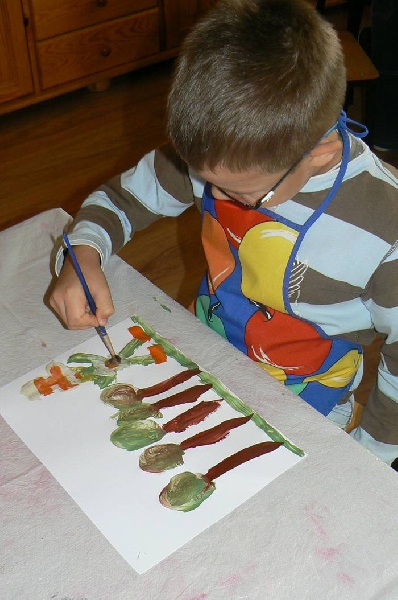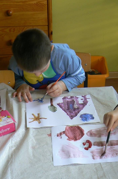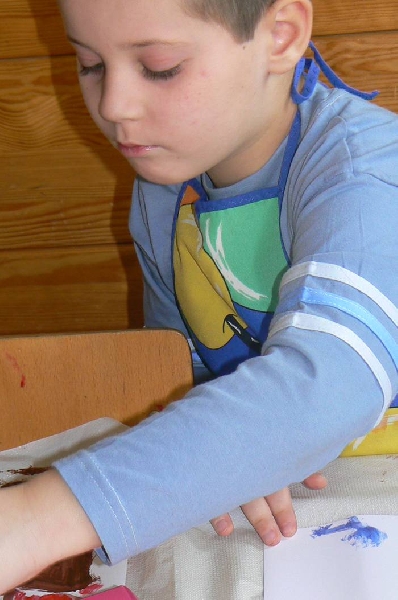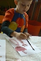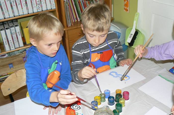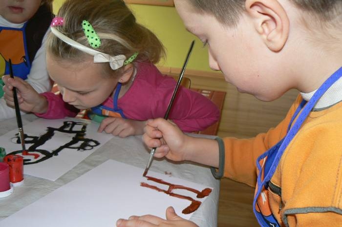 Szare, jesienne dni wzbogacamy kolorowymi farbami. Malowaliśmy postać pana Listopada, który ,,.... z liści złotych ma berecik, a kubraczek z nut".