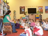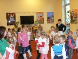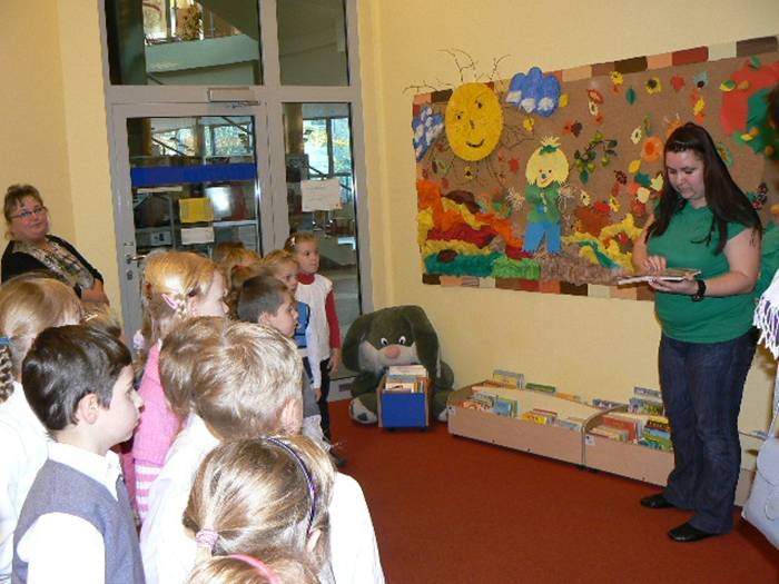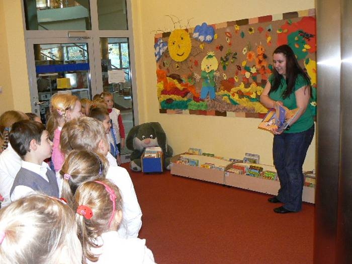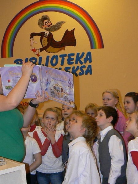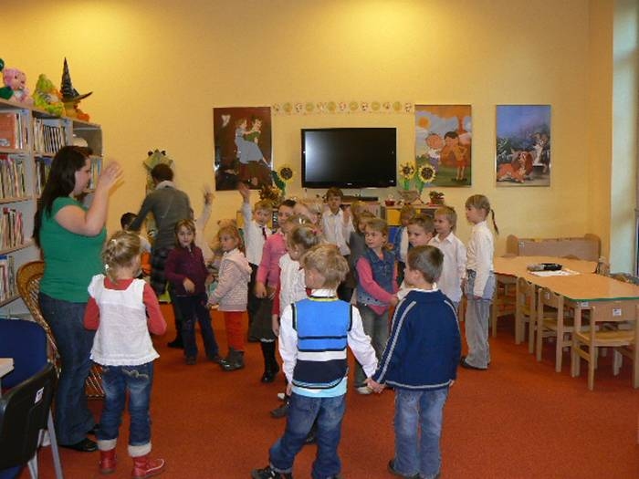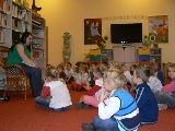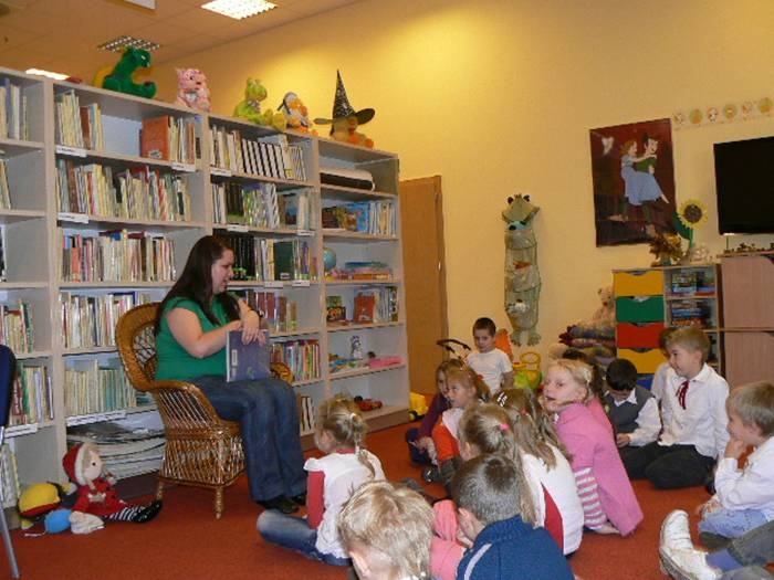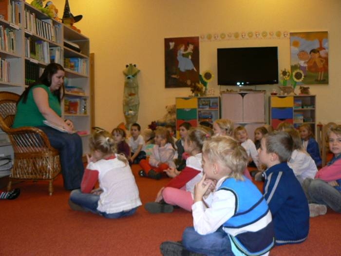 Co roku odwiedzamy Bibliotekę Wojewódzką. Uczestniczyliśmy w zajęciach edukacyjnych na temat prawidłowego korzystania z książek. Przy okazji wysłuchaliśmy pięknej legendy pt. ,,Kwiat paproci”. W podziękowaniu dla pani zaśpiewaliśmy jesienną piosenkę.