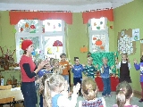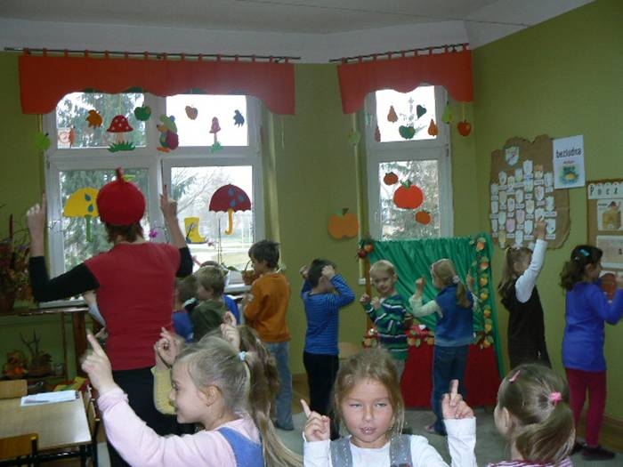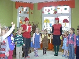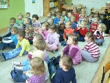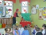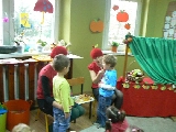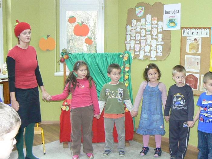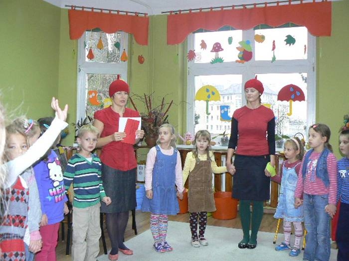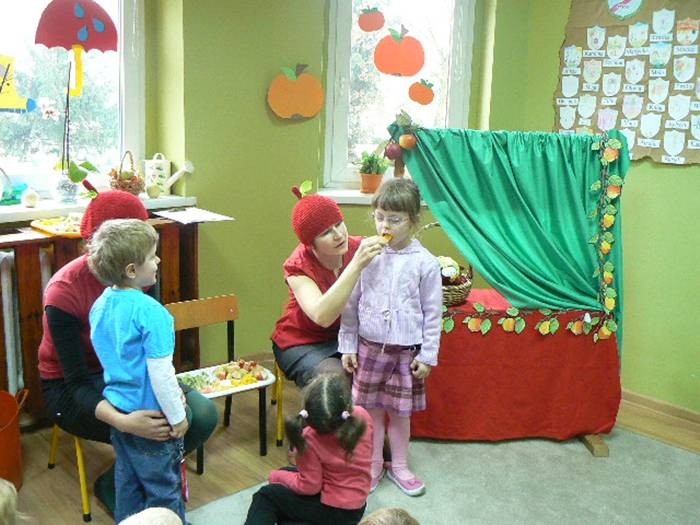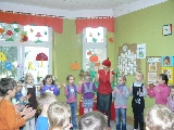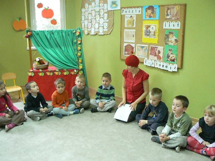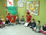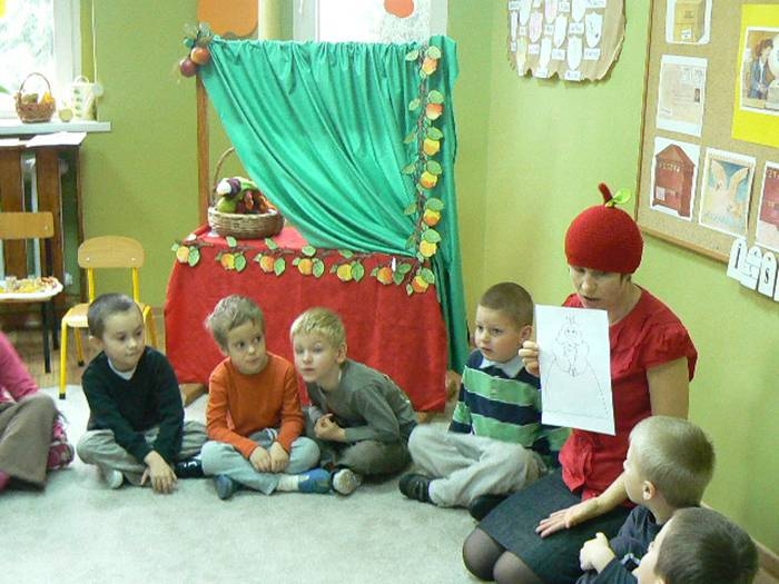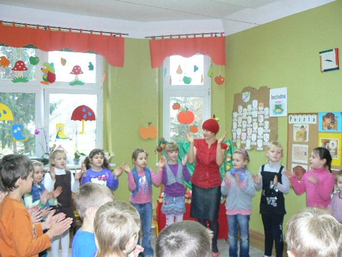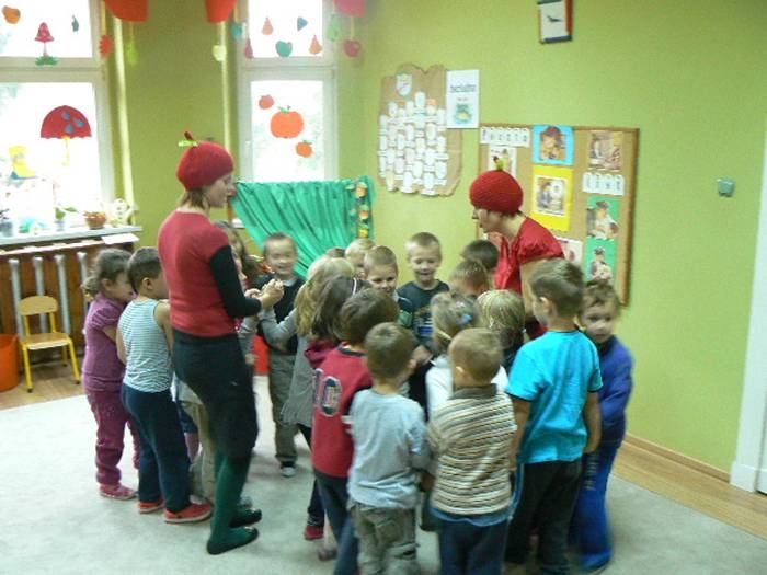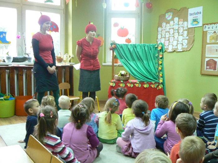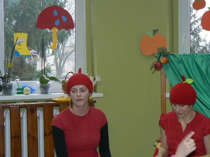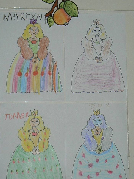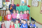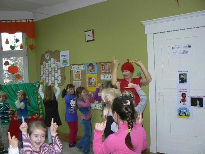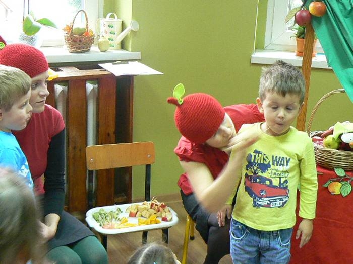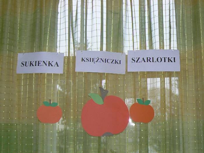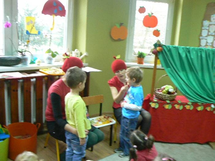17 listopada 2011r. w naszym przedszkolu królował kolor czerwony, a to wszystko na cześć jabłka. Celem uroczystości święta jabłka było poprzez wspaniałą zabawę poznanie jego wartości odżywczych, zachęcanie dzieciaków do codziennego zjadania owoców. Każda grupa spotkała się z Siostrami księżniczki Szarlotki, które opowiedziały dzieciom o Królestwie Jabłkowie, zadawały ,,jabłkowe zagadki", śpiewały i tańczyły piosenkę o jabłku oraz przedstawiły inscenizację wiersza J. Brzechwy "Entliczek - Pentliczek".Na koniec spotkania nasze przedszkolaki ze smakiem zjadły przygotowane jabłuszka oraz zaprojektowały sukienkę dla Księżniczki.