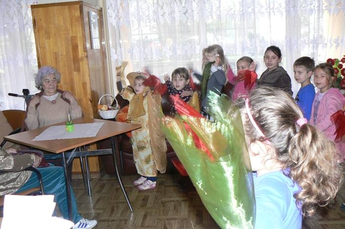 2 grudnia 2011 roku starszaki były z wizytą w Domu Dziennego Pobytu w Gorzowie Wielkopolskim, na którym zaprezentowały swój program artystyczny o jesieni. Dorośli gromkimi brawami dziękowali małym aktorom i poprosili ich o kolejne teatrzyki. Dzieci na koniec wręczyły własnoręcznie wykonane upominki.