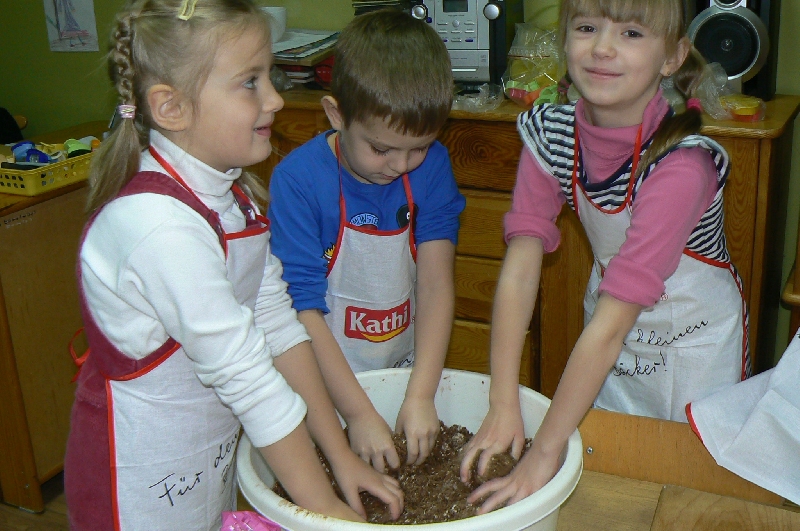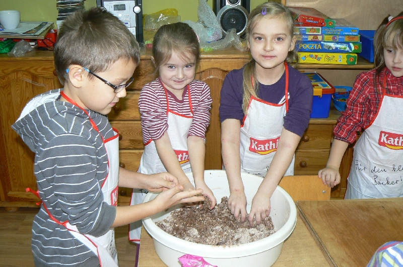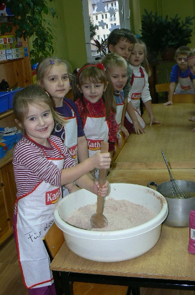W naszym przedszkolu pachnie pierniczkami, jak co roku, pieczeniem ich rozpoczęliśmy przygotowania do Świąt Bożego Narodzenia.