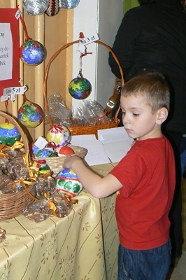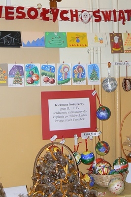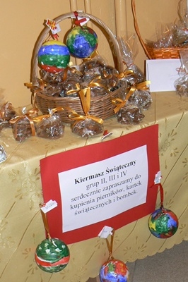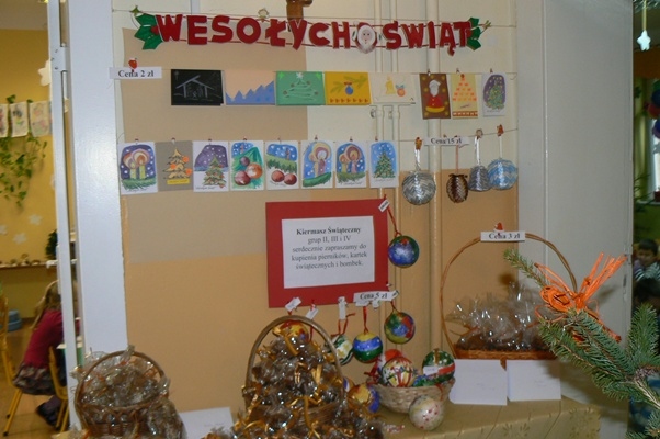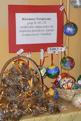Ręcznie robione kartki, pierniki, bombki i wiele innych świątecznych ozdób można było kupić na naszym przedszkolnym kiermaszu. Jak co roku w naszej placówce został zorganizowany kiermasz ozdób świątecznych. Nauczycielki ze wszystkich grup wspólnie ze swoimi małymi podopiecznymi stworzyły wiele pięknych ozdób. Rodzicie z niecierpliwością czekali na kiermasz. Z ciekawością oglądali i kupowali wyroby swoich pociech.