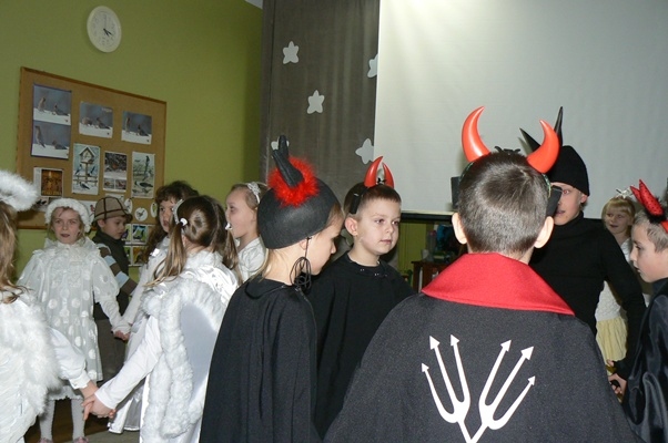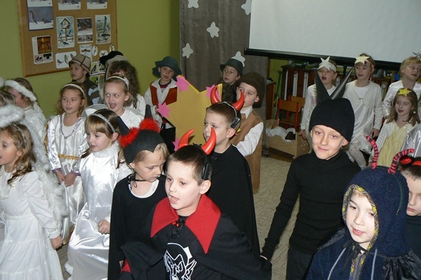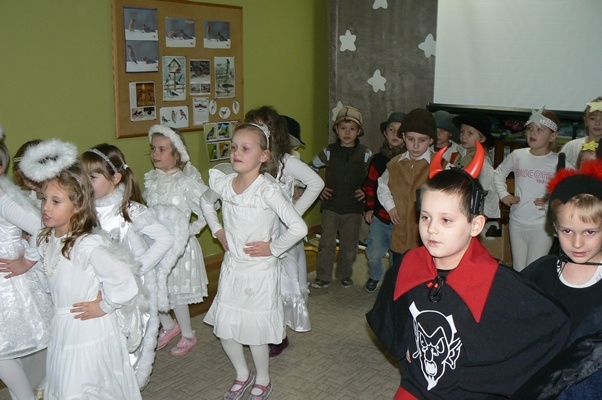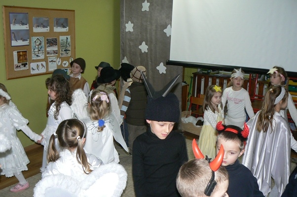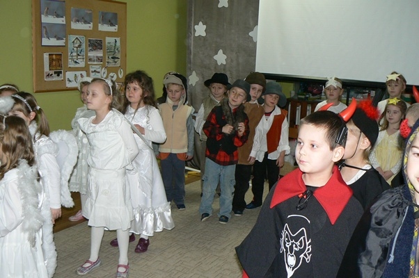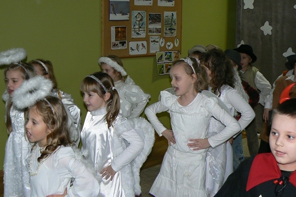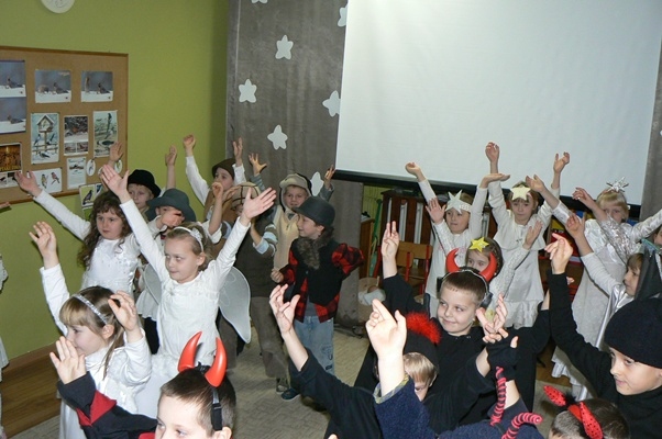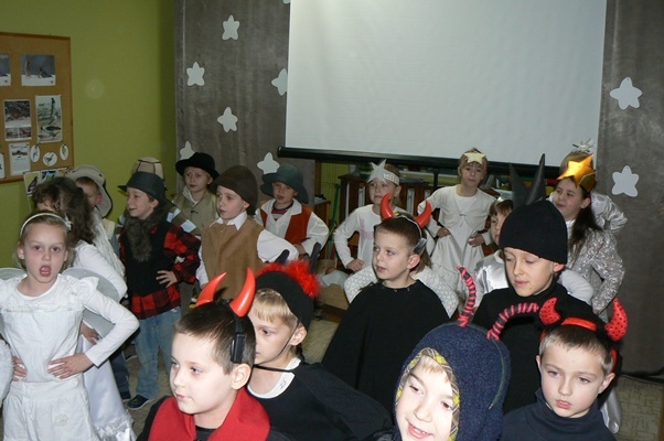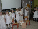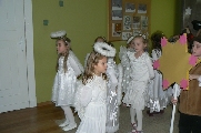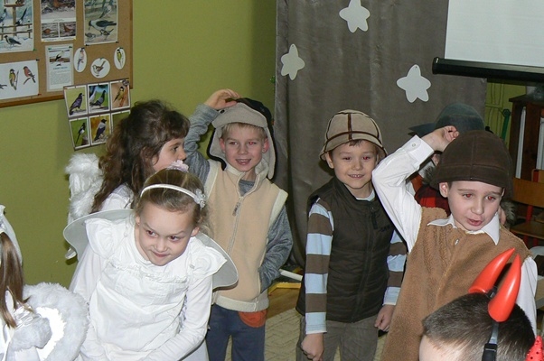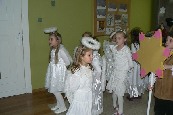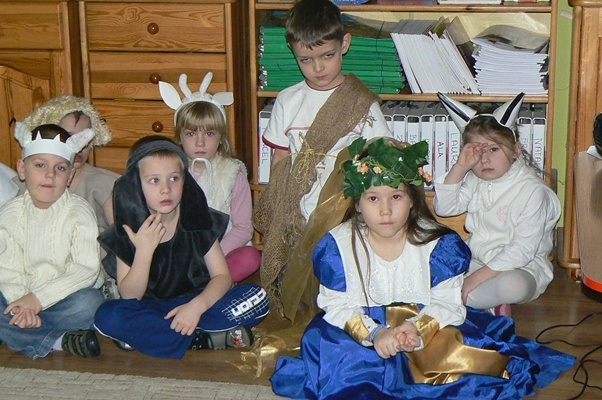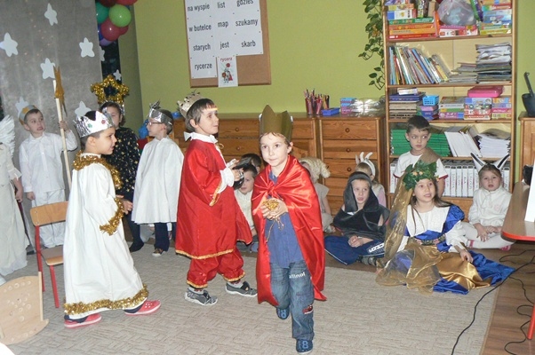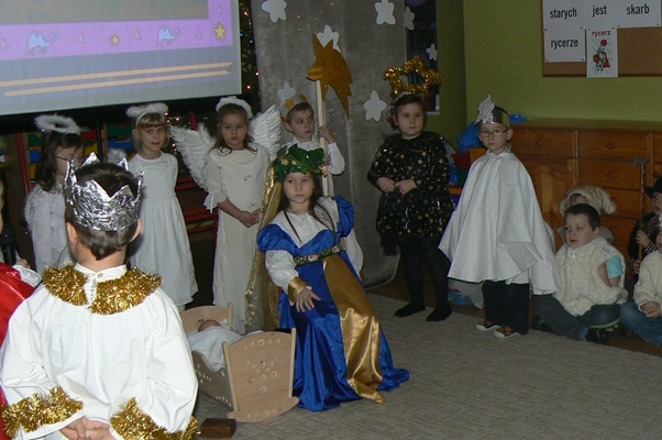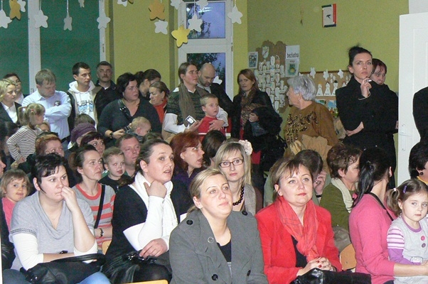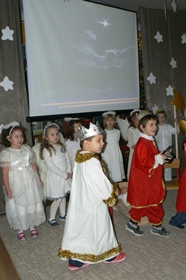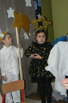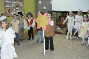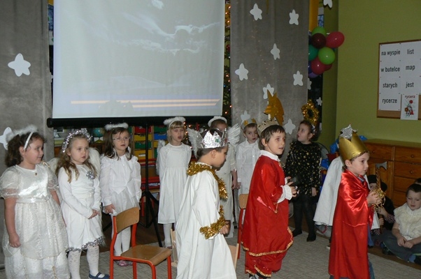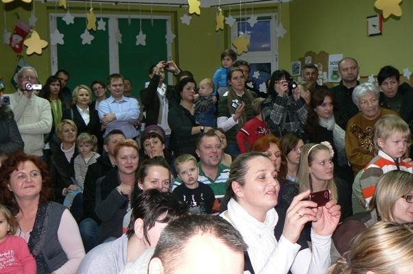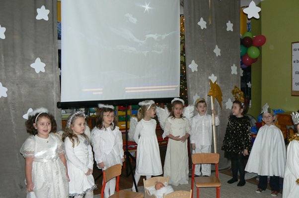 W środę 4 stycznia 2012 dzieci z grup III i IV zaprosiły swoich Rodziców do obejrzenia szczególnego przedstawienia. Pod okiem Wychowawczyń, przedszkolaki przygotowały jasełka. Ubrane w piękne stroje, starały się jak najlepiej pokazać Rodzicom jak przebiegały losy Świętej Rodziny. Rodzice nagrodzili małych aktorów brawami, nie obyło się też bez uścisków i gratulacji.