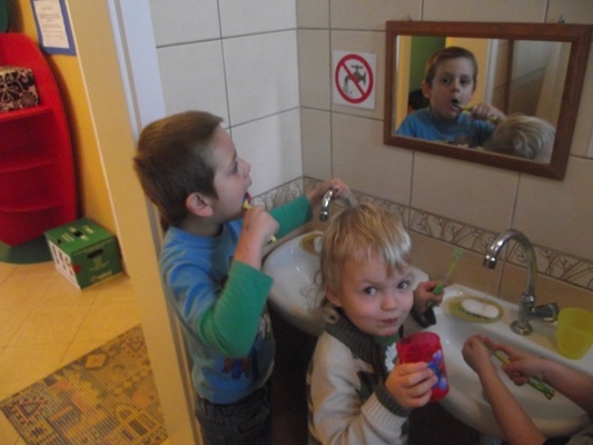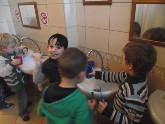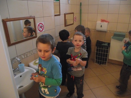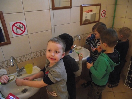 Zdrowe zęby to podstawa, mycie zębów to zabawa- doskonale pamiętają o tym dzieci z grupy II i dlatego regularnie czyszczą swoje ząbki.