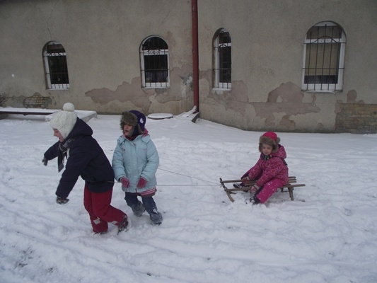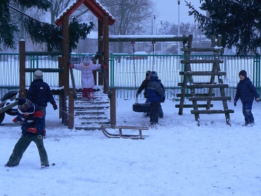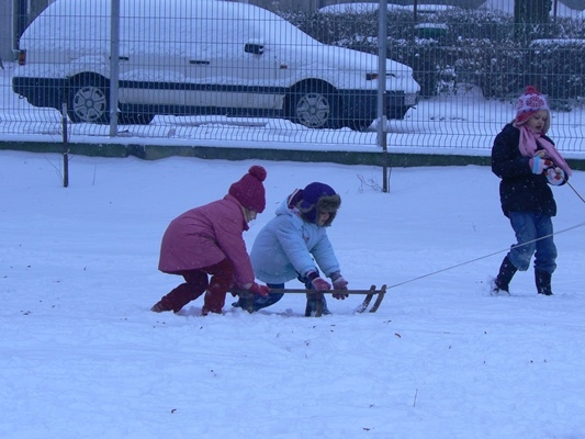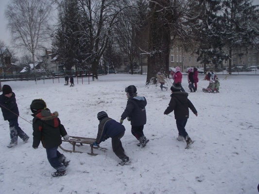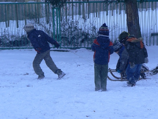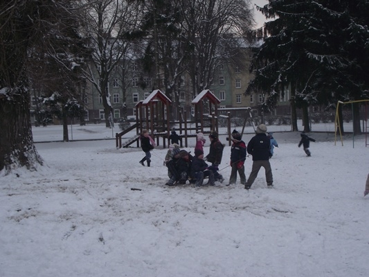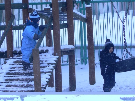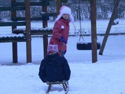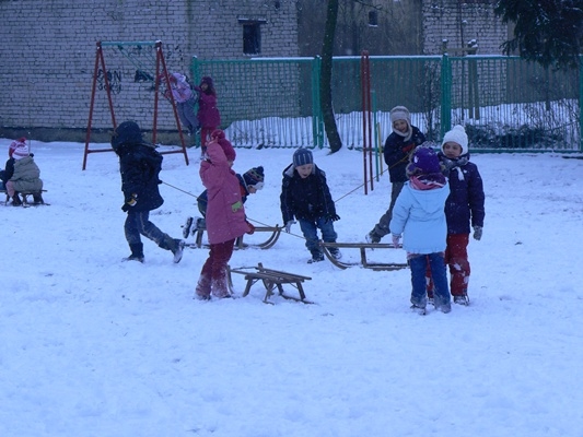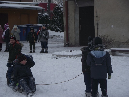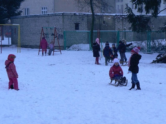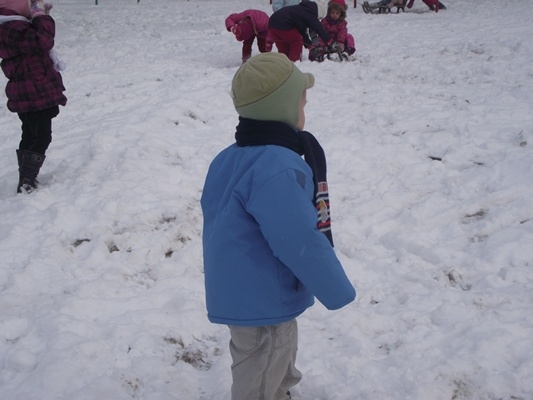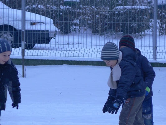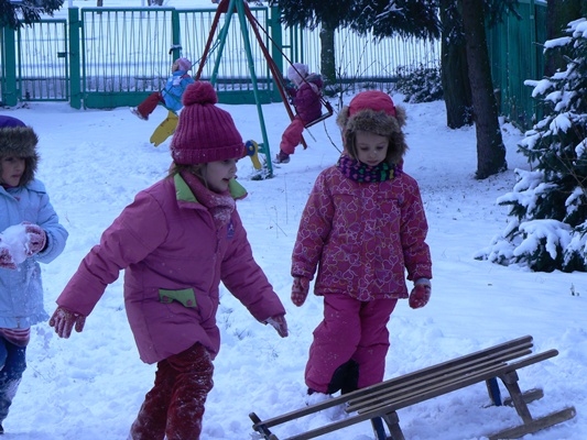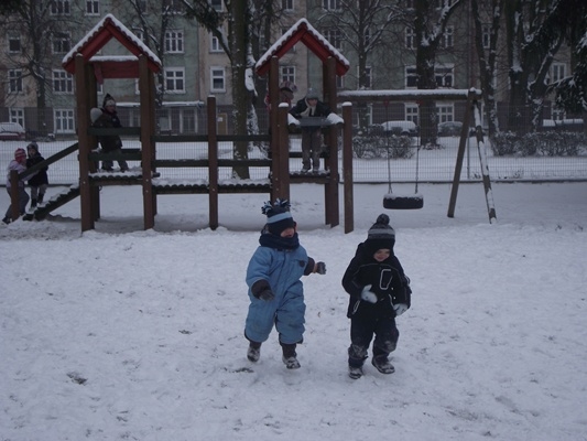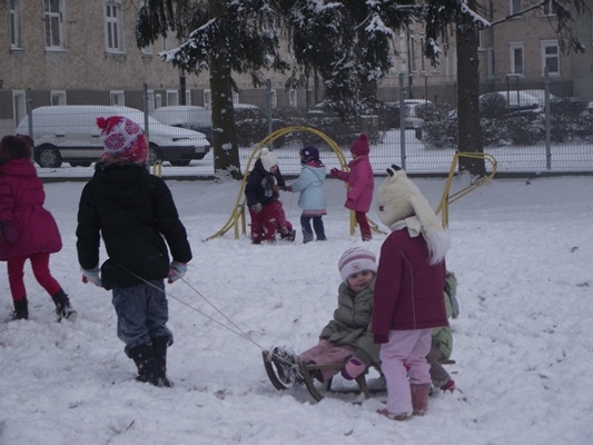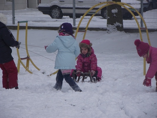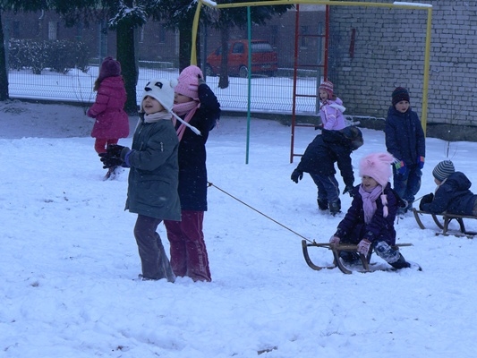 Hu, hu, ha nasza zima zła... A przedszkolaki z grupy II i IV zimy i mrozu się nie boją. Propozycja wyjścia do ogrodu przedszkolnego okazała się strzałem w dziesiątkę. Dzieci ubrały się ciepło i z wielką radością ruszyły do zabawy.