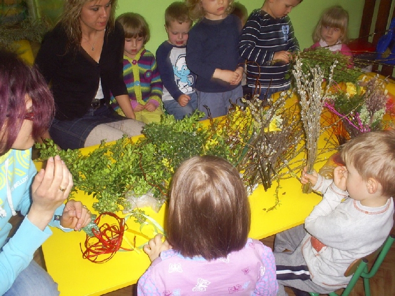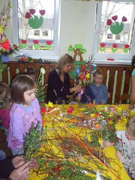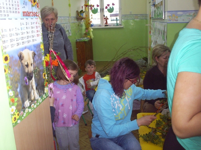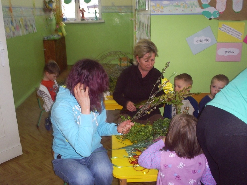 Dnia 29 marca dzieci wspólnie z Rodzicami wykonały palmy wielkanocne. Na początku spotkania wszyscy wysłuchali historii dotyczącej robienia tradycyjnych palm, a następnie z przyniesionych materiałów: bukszpanu, gałązek wierzbowych i kolorowych ozdób wykonaliśmy palmy wielkanocne- symbol Niedzieli Palmowej.