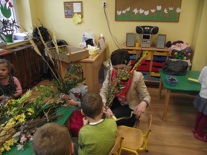 W ostatnim tygodniu marca wspólnie z Rodzicami wykonywaliśmy Palmy Wielkanocne. Wszyscy ochoczo zabrali się do pracy. Efekty wspólnej pracy można było obejrzeć w Niedzielę Palmową.