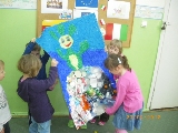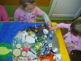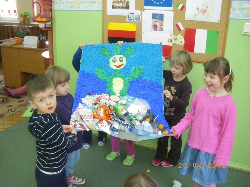 Maluszki wzięły udział w plebiscycie Ekoprzedszkolaki. Wykonały plakat na temat segregacji i wykorzystywania surowców wtórnych: plastikowych butelek, makulatury, puszek aluminiowych,metali.