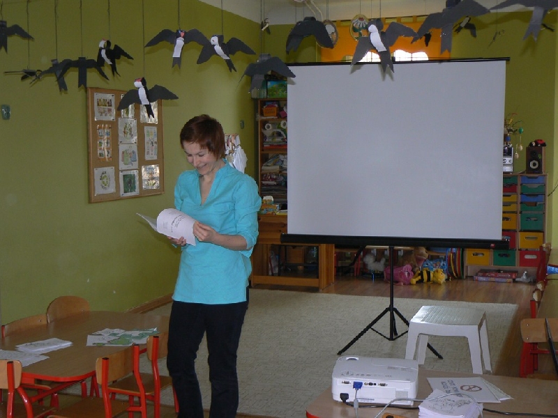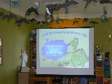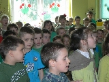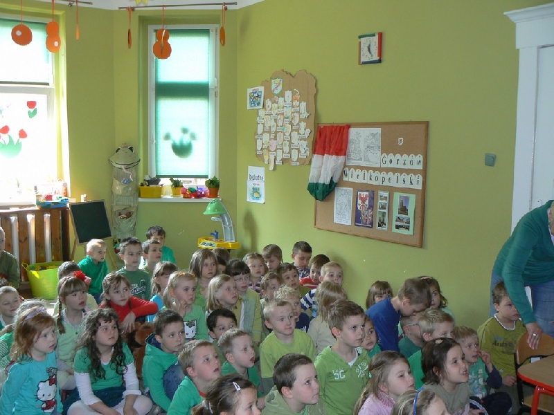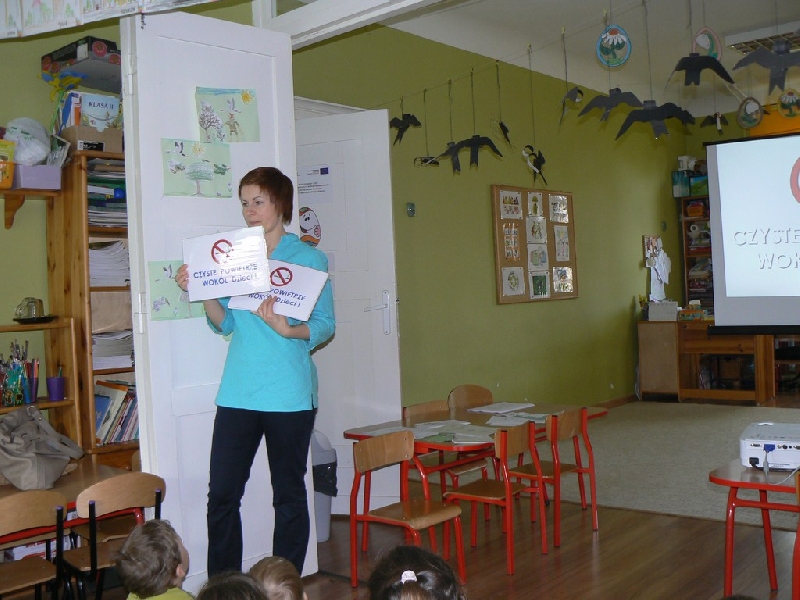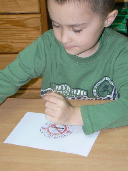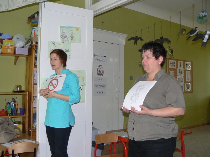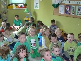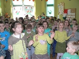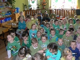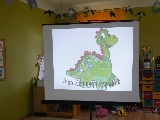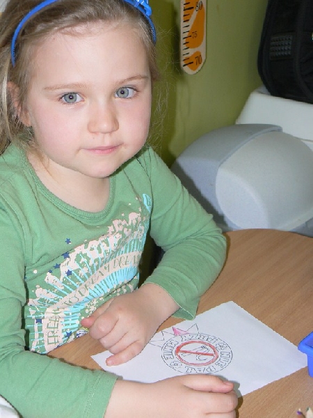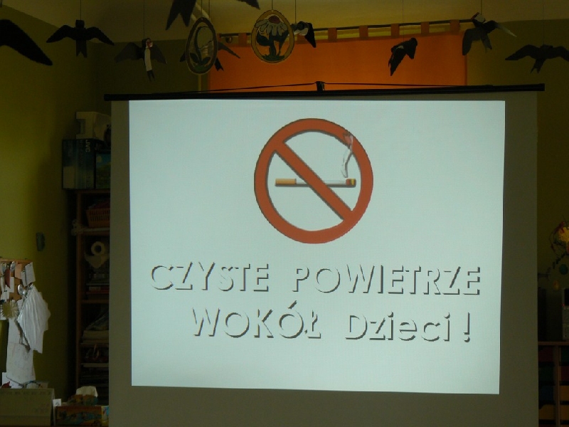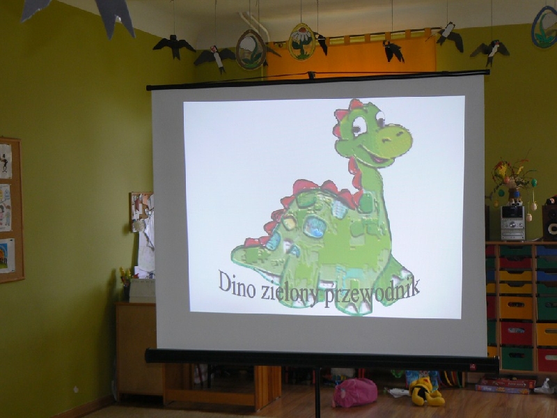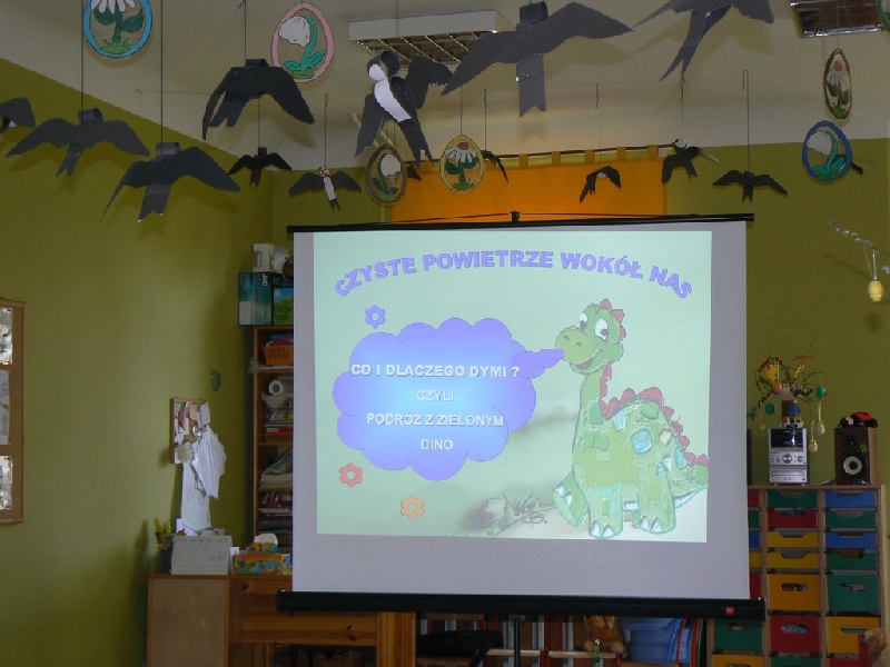 20 kwietnia 2012 roku nasze przedszkole odwiedził Dinek. Wszystkie dzieci wiedzą, że jest to zielony smok, który przypomina o czystym powietrzu wokół dzieci bez dymów i zanieczyszczeń. Drogi Rodzicu- nie pal przy mnie!