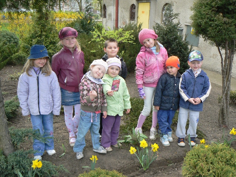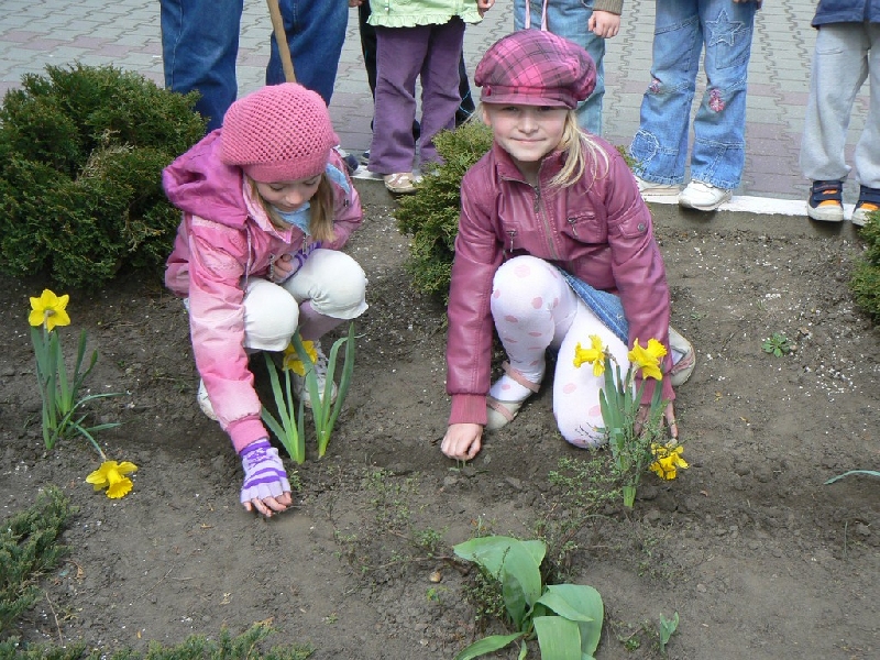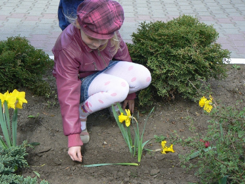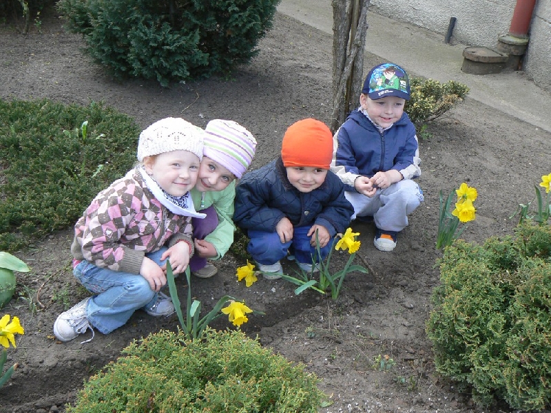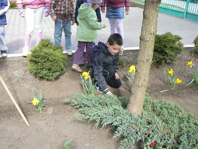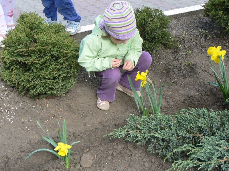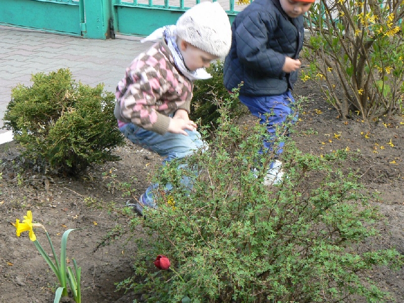 Przedszkolni strażnicy przyrody przyglądali się przepięknym żonkilom, które sami posadzili. Dzięki ich ciężkiej pracy przedszkolny ogród wygląda uroczo. Teraz nadszedł czas na wiosenne porządki- dzieci posiały maciejkę i astry.