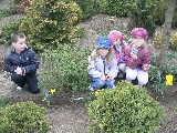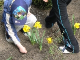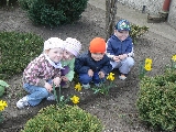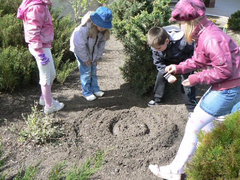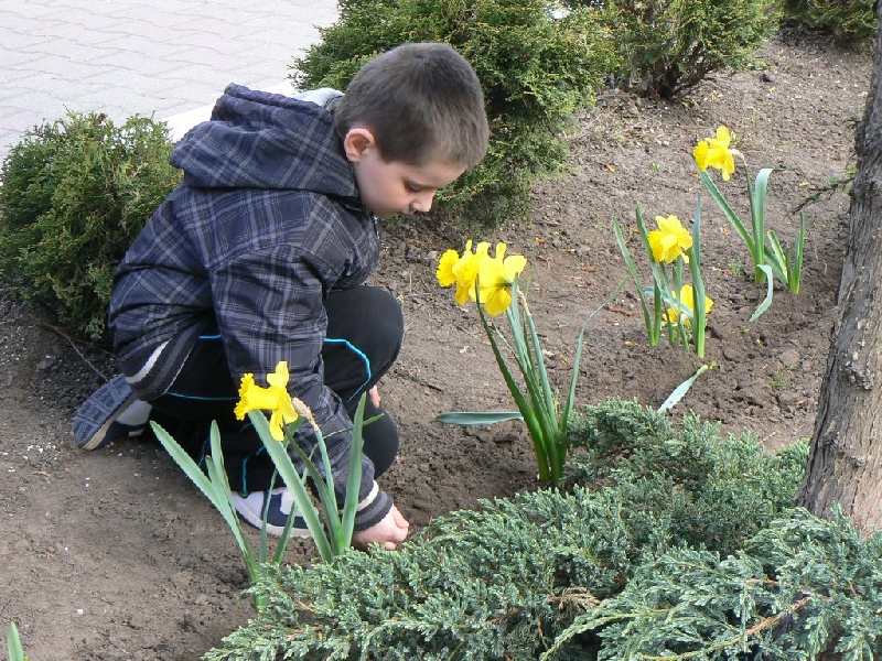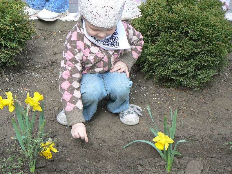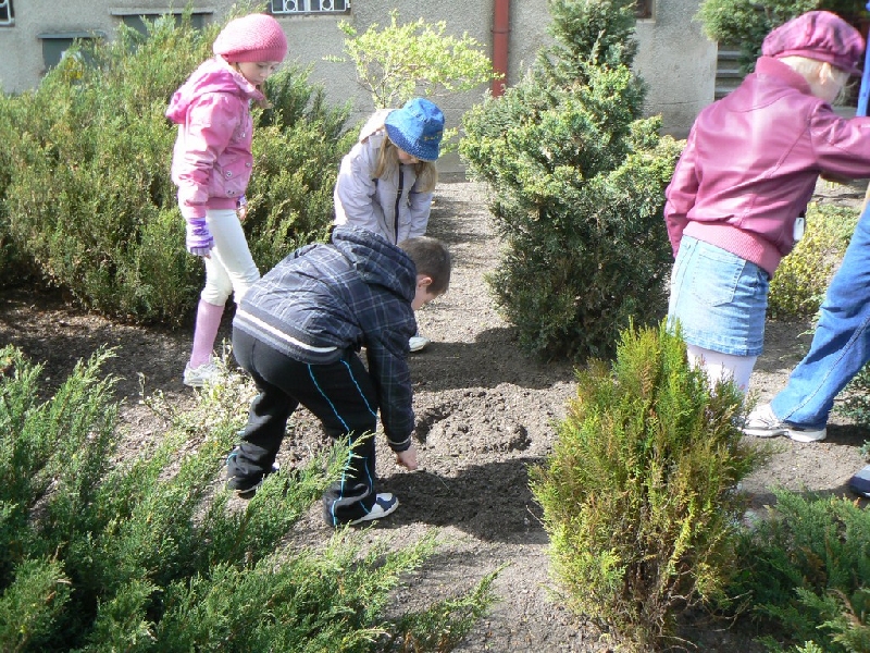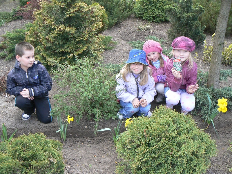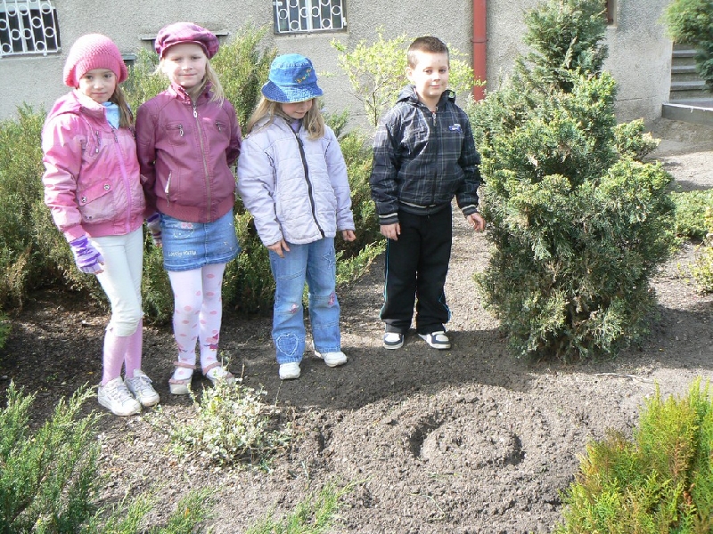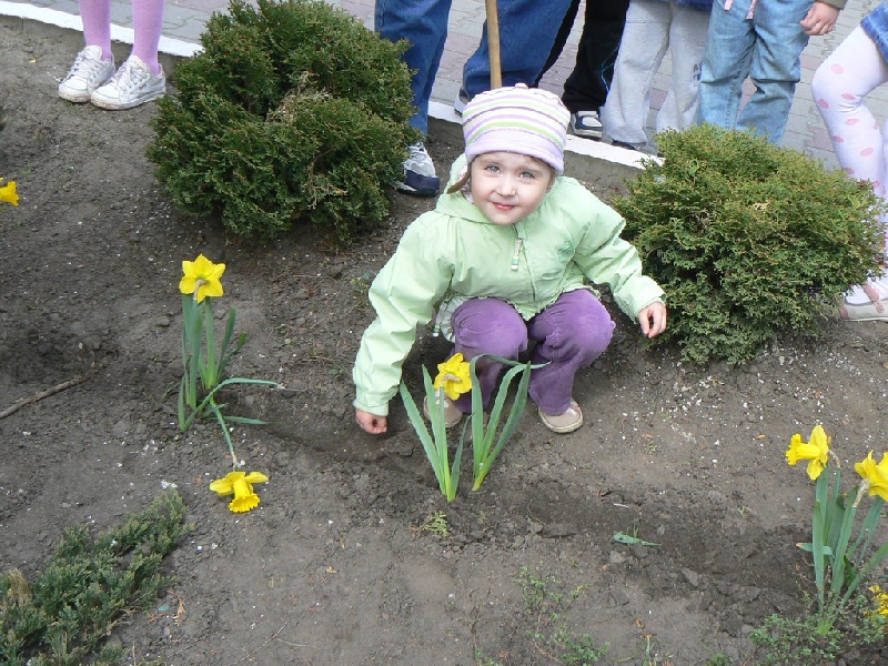 Przedszkolni strażnicy przyrody przyglądali się przepięknym żonkilom, które sami posadzili. Dzięki ich ciężkiej pracy przedszkolny ogród wygląda uroczo. Teraz nadszedł czas na wiosenne porządki- dzieci posiały maciejkę i astry.