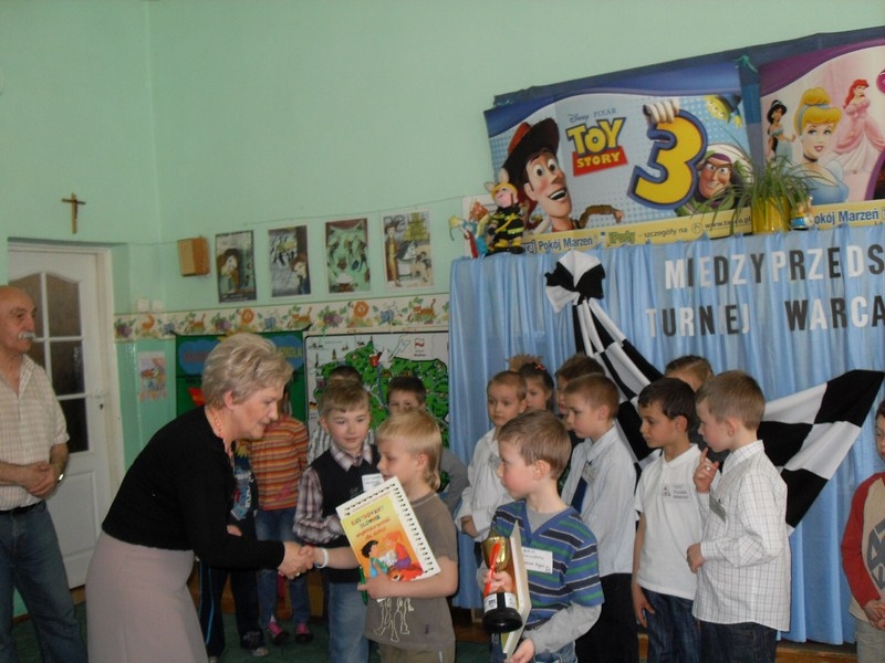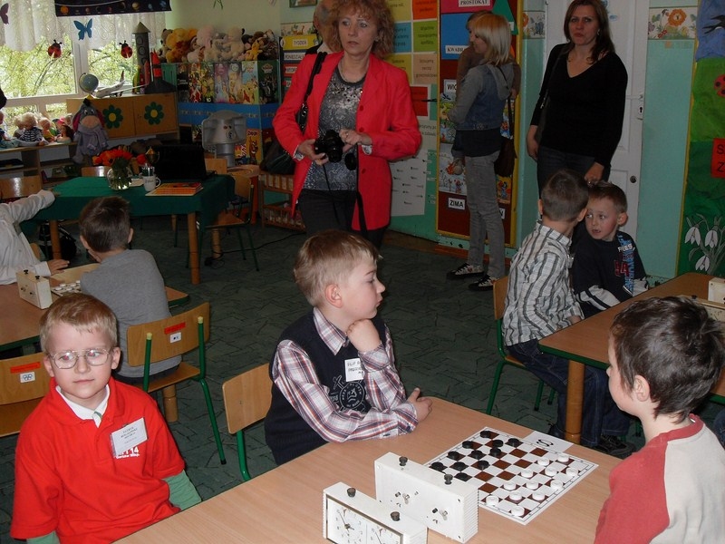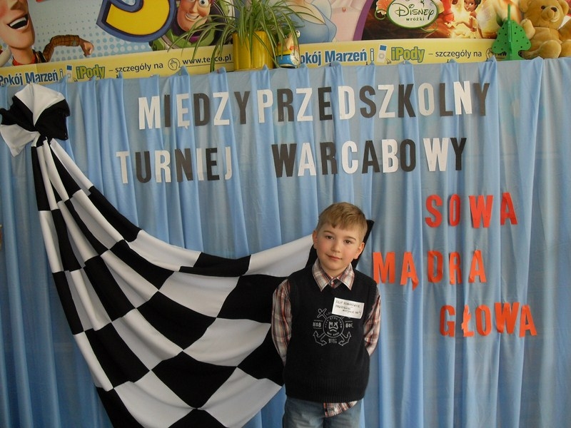 25 kwietnia 2012 roku odbył się Międzyprzedszkolny Turniej Warcabowy ,,Sowa Mądra Głowa" w Przedszkolu Miejskim nr 32. Naszą placówkę reprezentował Filip Romanowicz z grupy IV. Po serdecznym powitaniu 20 uczestników przystąpiono do warcabowych zmagań. Trwały one półtorej godziny, Jednak warto było- Filip zdobył III miejsce, otrzymał dyplom i nagrodę książkową. Gratulacje. Jesteśmy dumni z naszego reprezentanta.