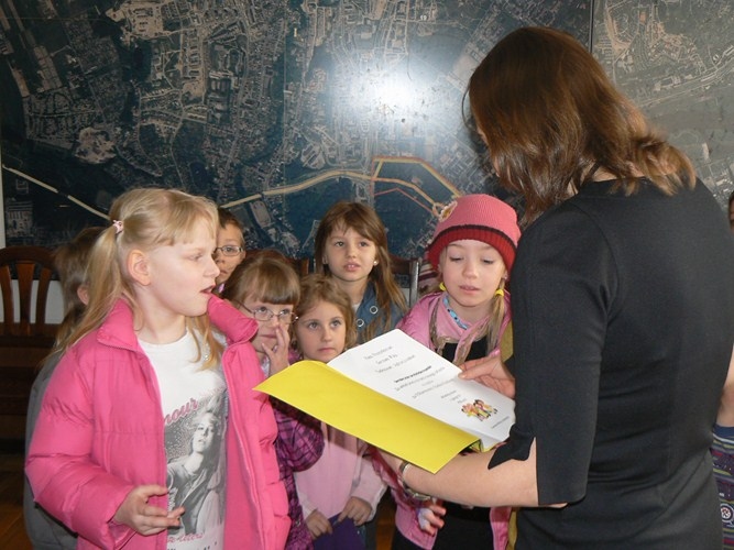 Zwiedziliśmy Urząd Miasta Gorzowa Wielkopolskiego, w którym pani Rzecznik Prasowy Prezydenta pokazała nam salę herbową i salę obrad Rady Miasta.Tak na niby wybieraliśmy spośród nas Prezydenta i głosowaliśmy nad Uchwałami. Było super. Potem zwiedziliśmy schron, a pani Ela z Urzędu Miasta pochwaliła nas za uwagę i zdyscyplinowanie oraz wręczyła drobne upominki z logo miasta. Nasze panie w nagrodę zaprowadziły nas na Bulwar. To była świetna wyprawa.