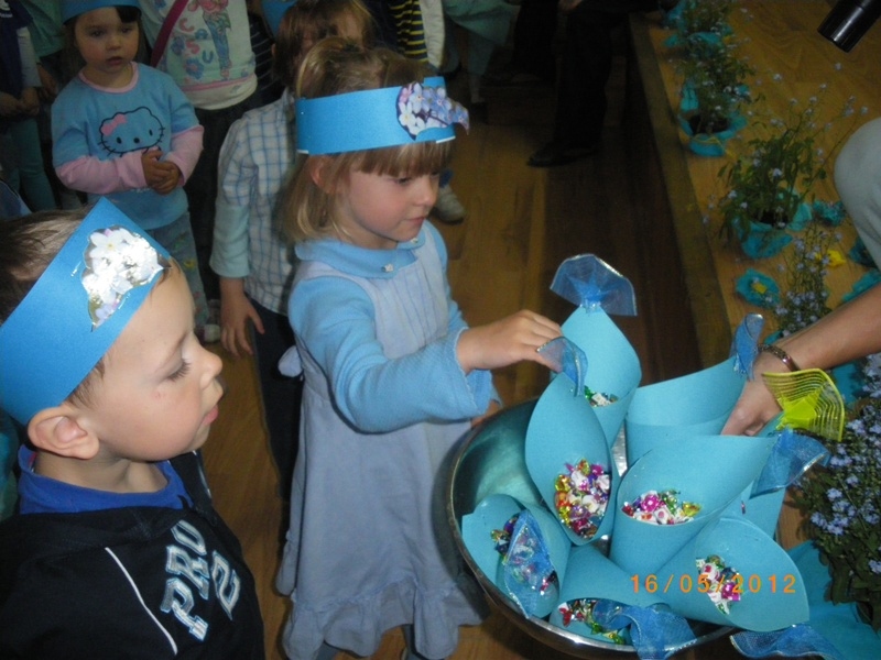 Dzieci z grupy I i III rozpoczęły przygotowania do tego sympatycznego wiosennego dnia. Wykonały opaski z symbolem niezapominajek, jak również przypominały o wzajemnej życzliwości, przyjaźni i miłości, a także o ochronie powietrza, ziemi i wody. Przedszkolaki ubrane na niebiesko, wyruszyły do Szkoły Podstawowej nr 4 by tam wspólnie z uczniami świętować. Dzieci ze szkoły prezentowały scenki, wiersze i piosenki związane z tematyką święta Niezapominajki. Tego dnia w przedszkolnym ogrodzie dzieci posadziły niezapominajki, które otrzymaliśmy w nagrodę.