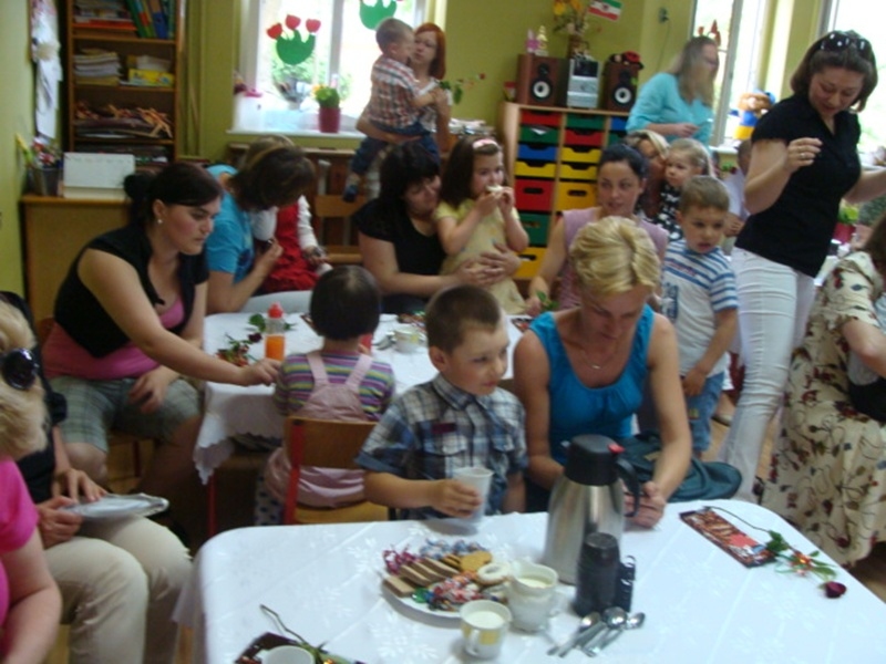 W dniu 21 maja gościliśmy w naszej grupie „Mali Odkrywcy” Drogich Rodziców. Wspólnie świętowaliśmy Dzień Mamy i Taty. Zaprezentowaliśmy rodzicom wiersze, piosenki oraz wspólne zabawy. Po występach były życzenia oraz prezenty, nie zabrakło słodkości i czułych uścisków.
