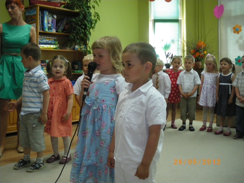 25 maja 2012 roku dzieci z grupy II gościły w przedszkolu swoich Rodziców. Były wiersze, tańce oraz upominki. Niezapomniane chwile wzruszenia i wspólnej radości..... Podczas słuchania wierszyków, piosenek oraz oglądania występów tanecznych w wykonaniu przedszkolaków na twarzach Rodziców widać było radość, zadowolenie i łzy szczęścia.