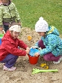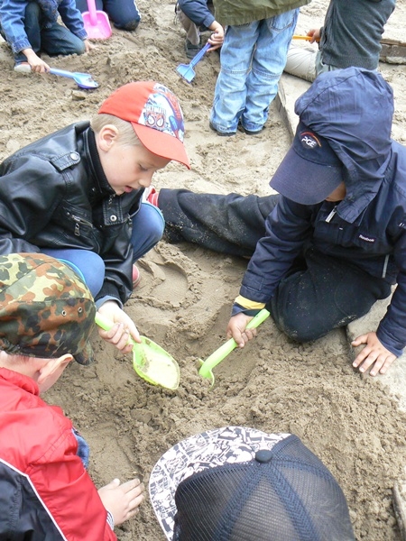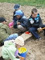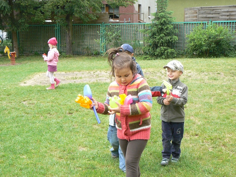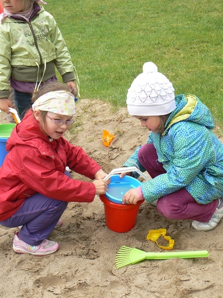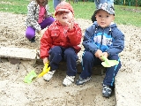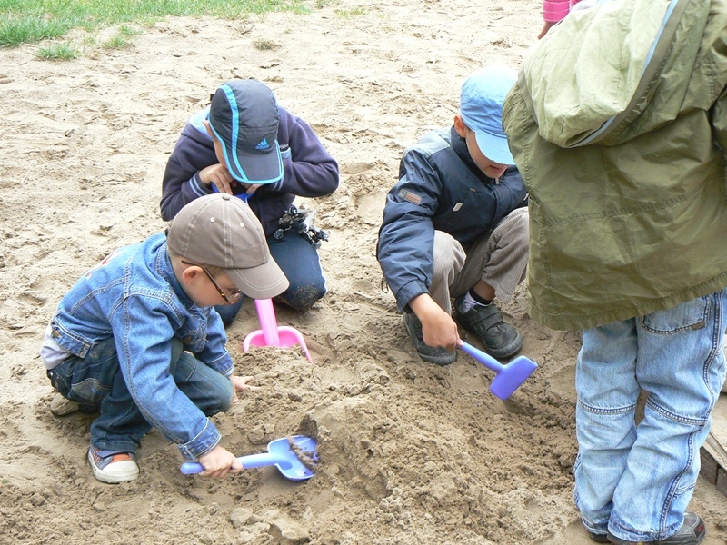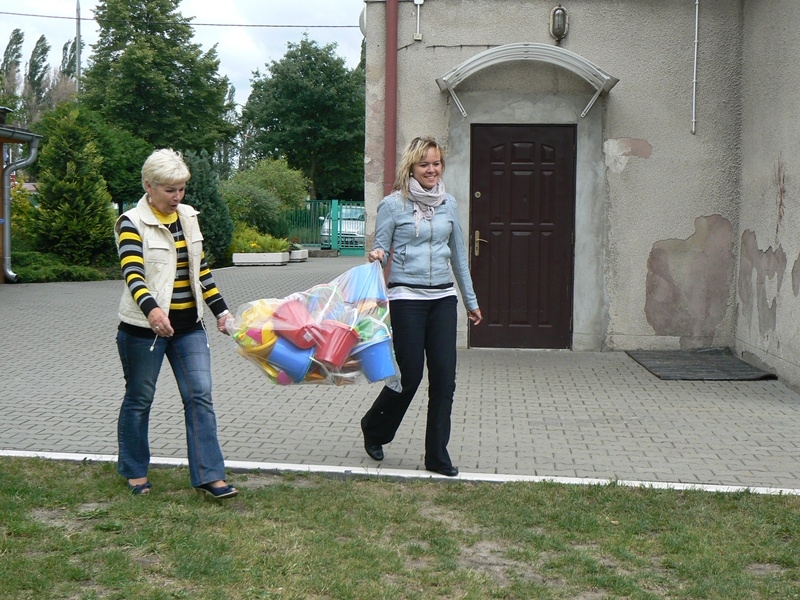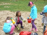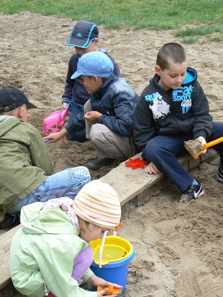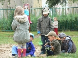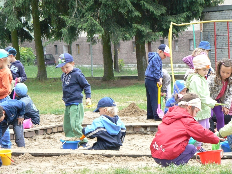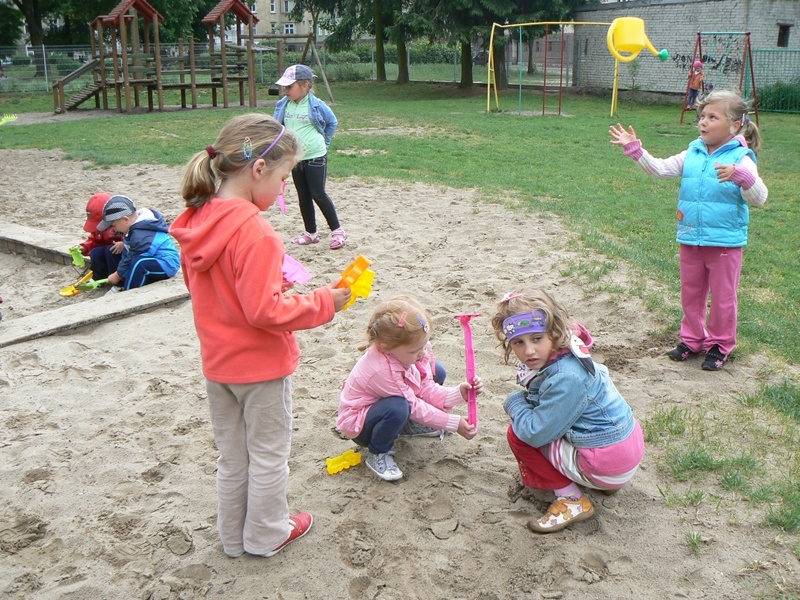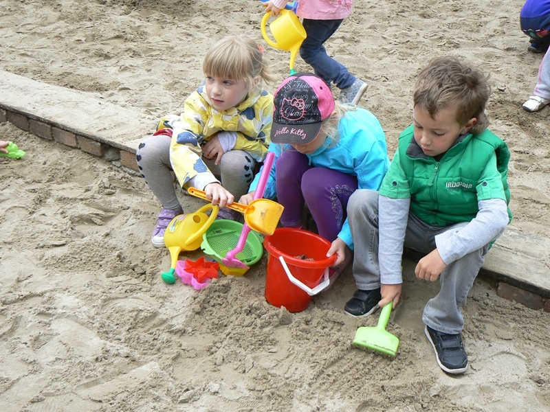Wiele radości sprawiły naszym przedszkolakom nowe zabawki do piaskownicy. Zimna aura nie przeszkodziła w ciekawym budowaniu z piasku.