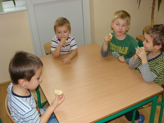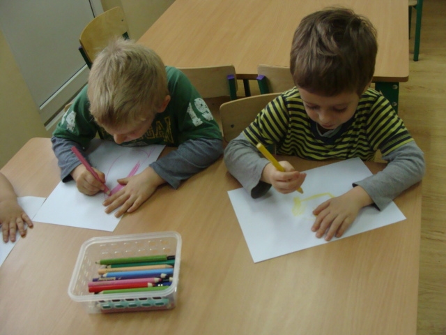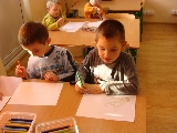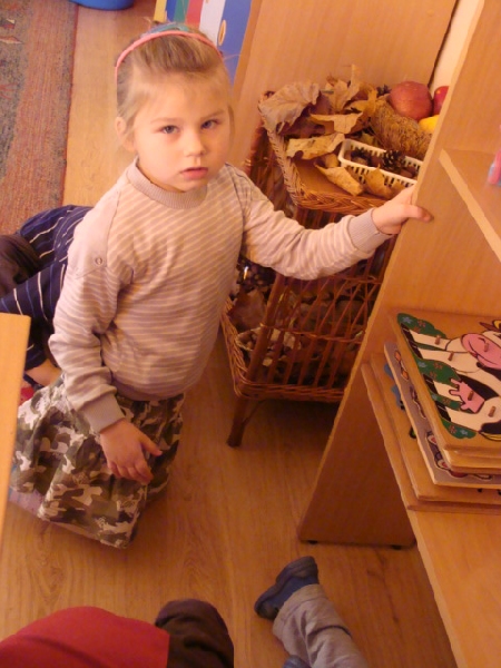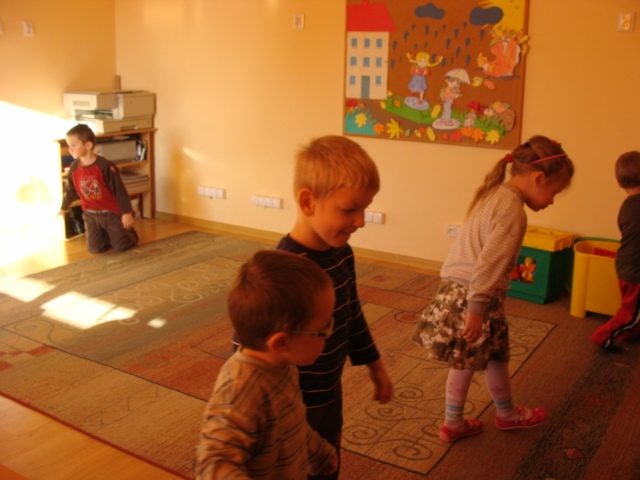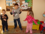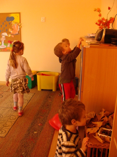 Zajączek w zielonym lesie mieszka.... Dzieci dowiedziały się dlaczego liście jesienią zmieniają kolory i dlaczego jeż ma kolce. Jakie mamy owoce jesieni i jak wygląda las jesienią. Poznały szkielet człowieka i dowiedziały się jak wzmocnić kości. Jak również, które ptaki mieszkają w Polsce i jak zimą opiekować się nimi.