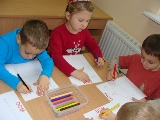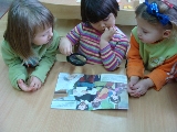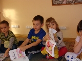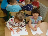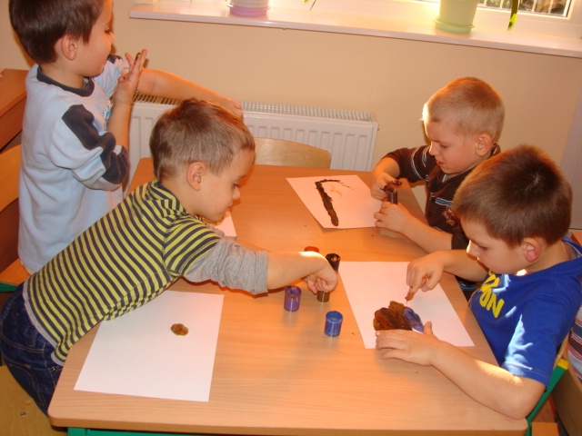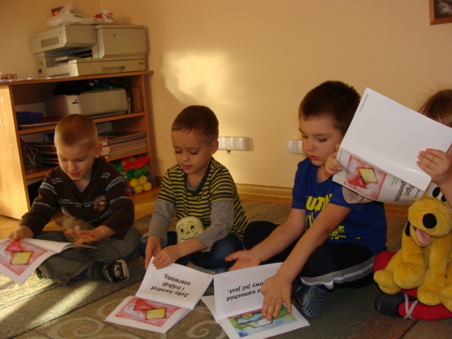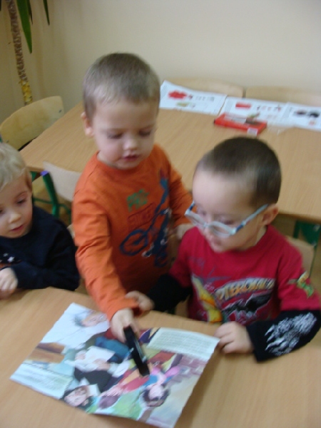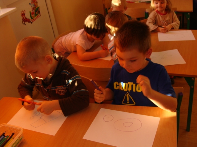Koło, kółko plus prostokąt brązowy… Dzieci poznawały figury geometryczne: koło, kwadrat, trójkąt, prostokąt i trapez. Dowiedziały się jak działa ludzkie oko i z czego można zrobić szkło powiększające. Bawiły się kolorami, mieszając je. Dowiedziały się jak zwierzęta przygotowują się do zimy i co chroni je przed zimnem.