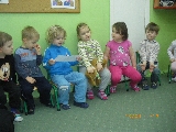 Maluszki na kolejnym spotkaniu z Zaczarowanym Zajączkiem postanowiły nadać Mu imię. Dzieci miały wiele pomysłów. Od dziś każdy po imieniu będzie zwracał się do Zajączka.