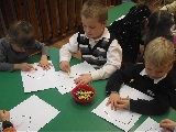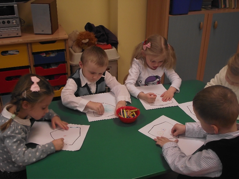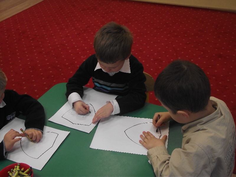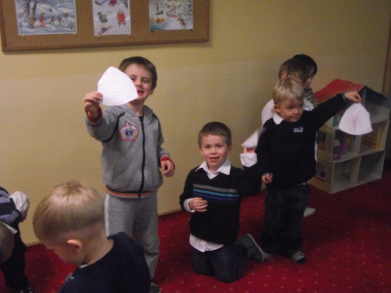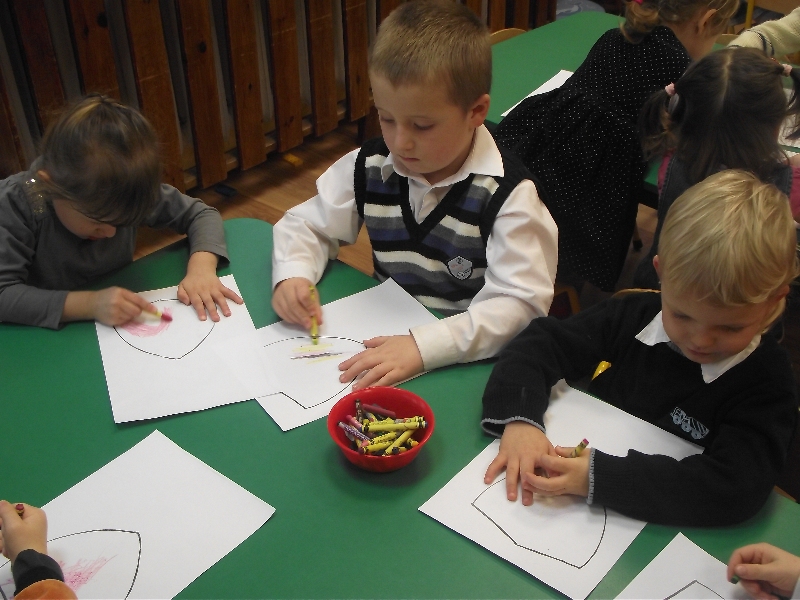 Dzieci odwiedził tajemniczy gość. Okazało się, że był to Zaczarowany Zajączek, który zostawił dzieciom list. Każdy przedszkolak został pasowany na Rycerza Wiedzy i miał za zadanie stworzyć swój własny, niepowtarzalny herb. Wszystkie prace znalazły się na wspólnym plakacie, który można podziwiać w naszej sali.
