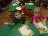 Wszystkie dzieci mogły się dowiedzieć co rozpuszcza się w wodzie. Eksperyment z piaskiem i cukrem wywołał wielkie zainteresowanie. Poza tym ciągle poznajemy nowe zabawy i wyrazy. Na koniec zajęć każdy przedszkolak mógł się przekonać jak smakuje ślina, kiedy na języku znajdzie się cukier, sól i kawałeczek chleba.