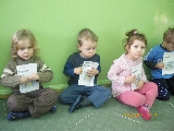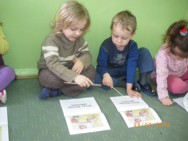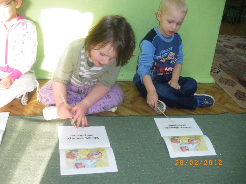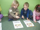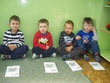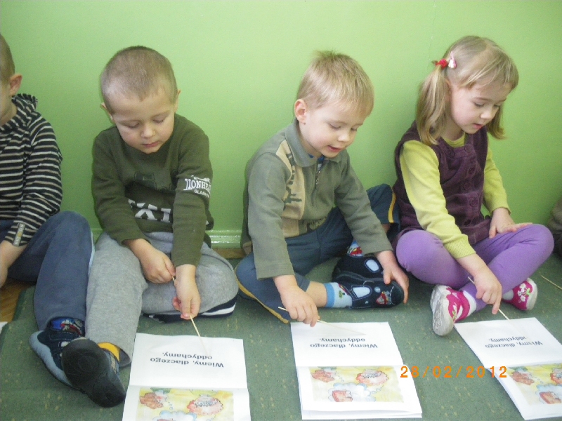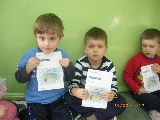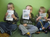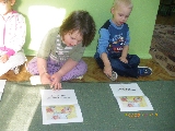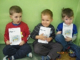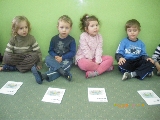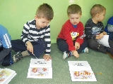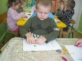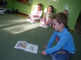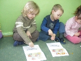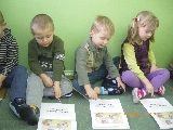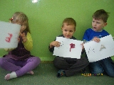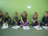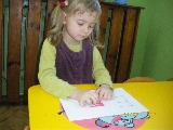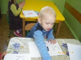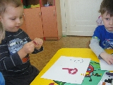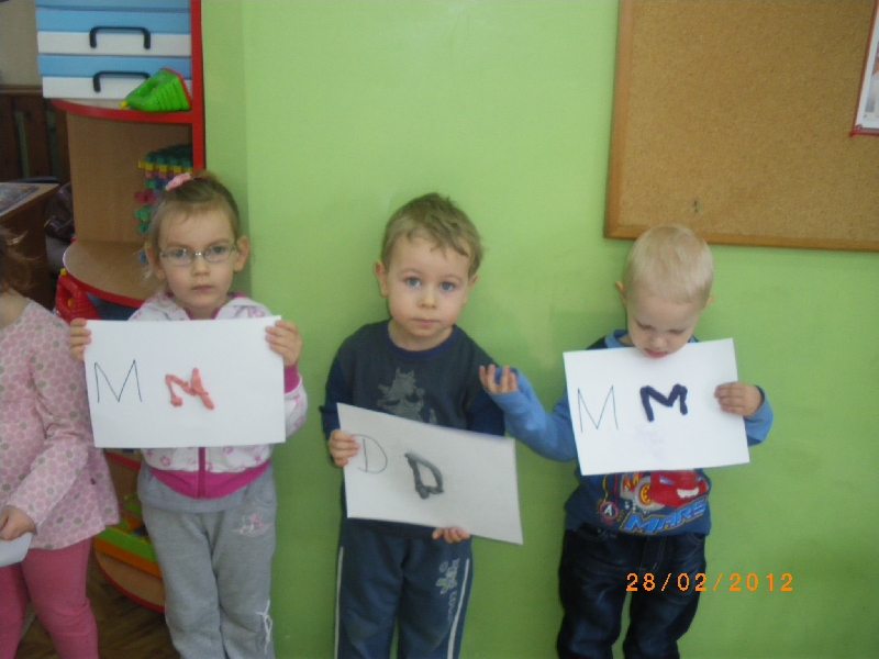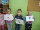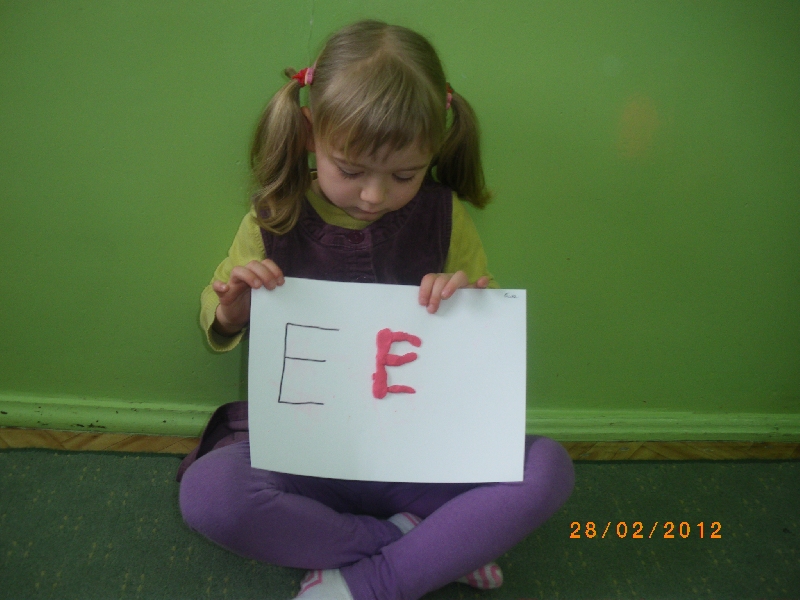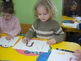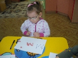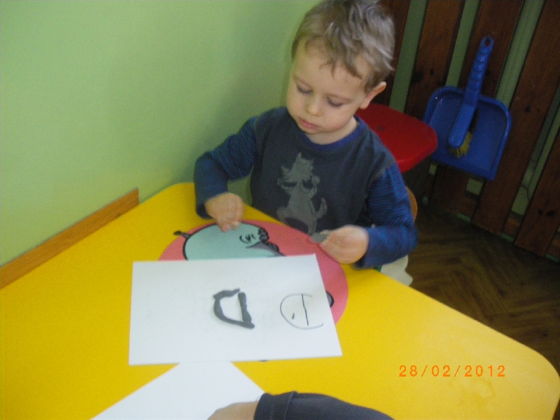 Zajączek przygotował kolejne zadanie. Dzieci lepiły z plasteliny pierwszą literkę swojego imienia. Po ty zajęciu dzieci wiedzą, że imiona piszemy wielką literą.