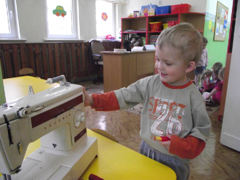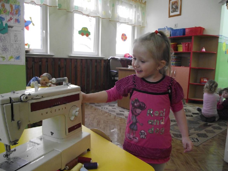 W ramach realizacji tematu tygodniowego „Poznajemy zawód krawcowej” dzieci z grupy I zostały małymi aktorami. Wszystkie maluszki chętnie wcieliły się w rolę krawcowej. Pełni chęci i zapału „szyli” spodenki i bluzy. Efekty były zadowalające ! Dzieci chętnie uczyły się wierszy, piosenek a także założyły „kącik krawiecki”. Przedszkolacy dużo dowiedzieli się na temat pracy krawcowej, komu służy jej praca i jakimi narzędziami się posługuje. Poznali także etapy szycia ubrań.