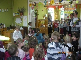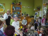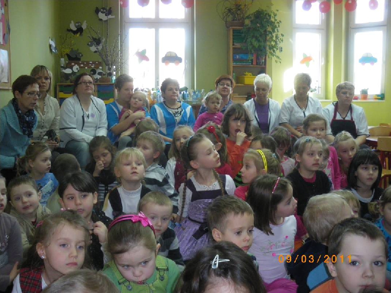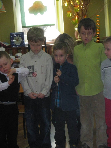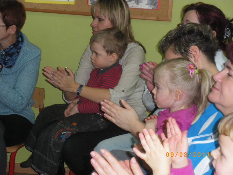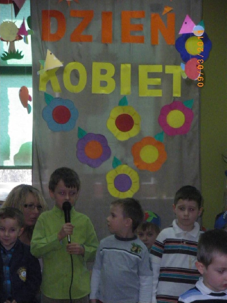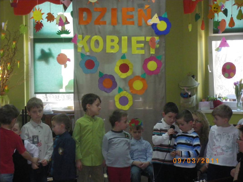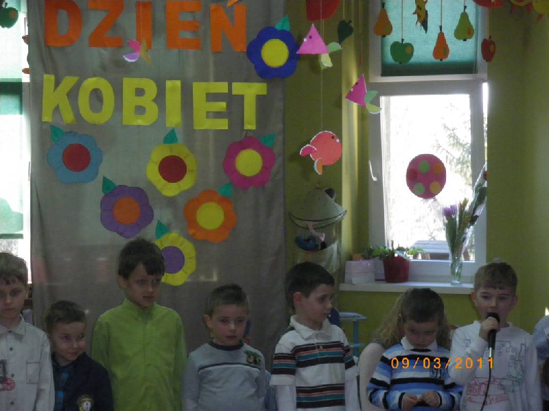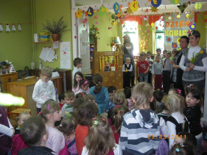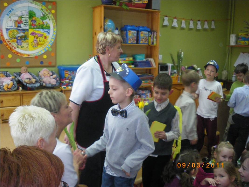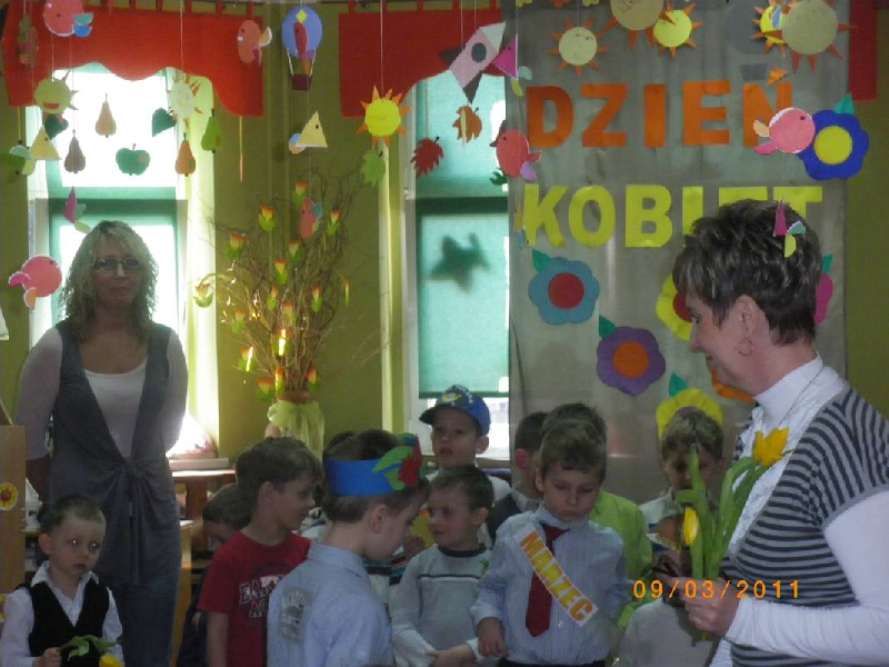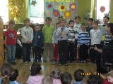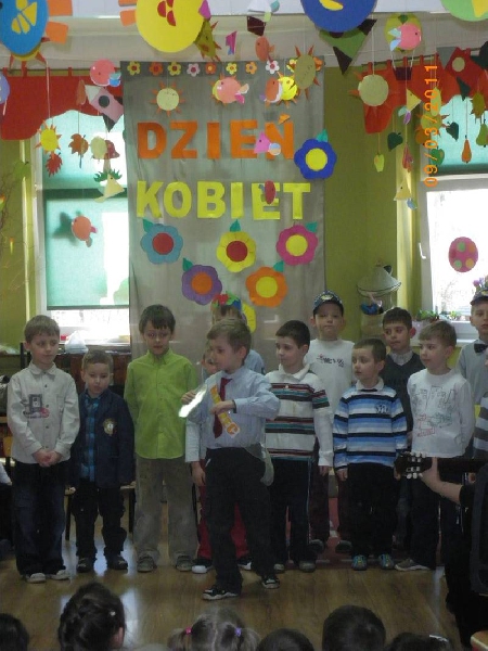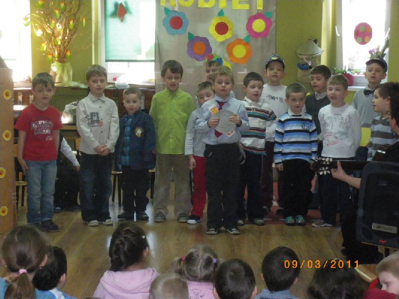 Chłopcy ze wszystkich grup wiekowych przygotowali dla Pań pracujących w naszym przedszkolu niespodziankę w postaci programu artystycznego.Symboliczny tulipan i życzenia wprowadziły wszystkich w miły nastrój i niezapomniane wrażenia.
