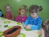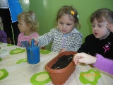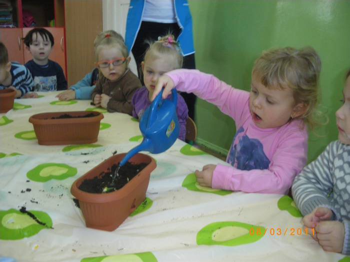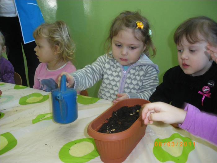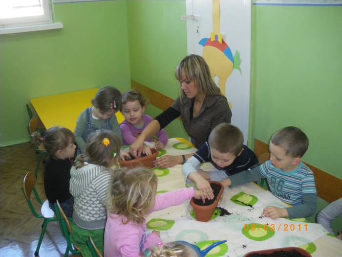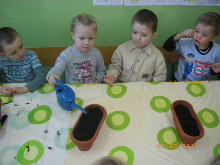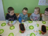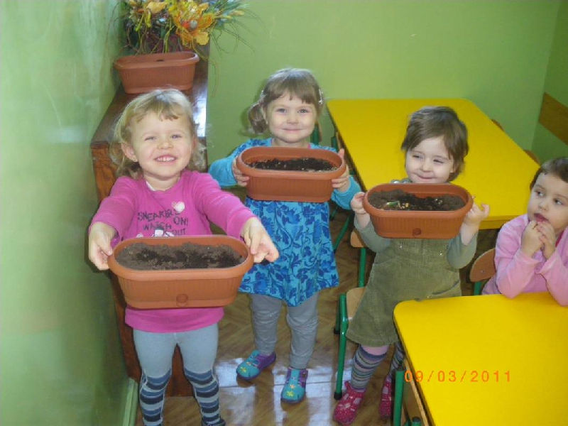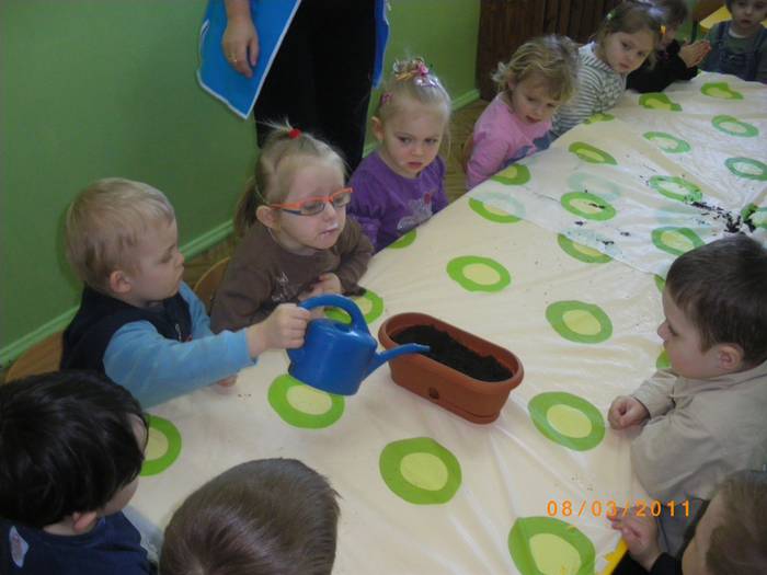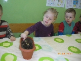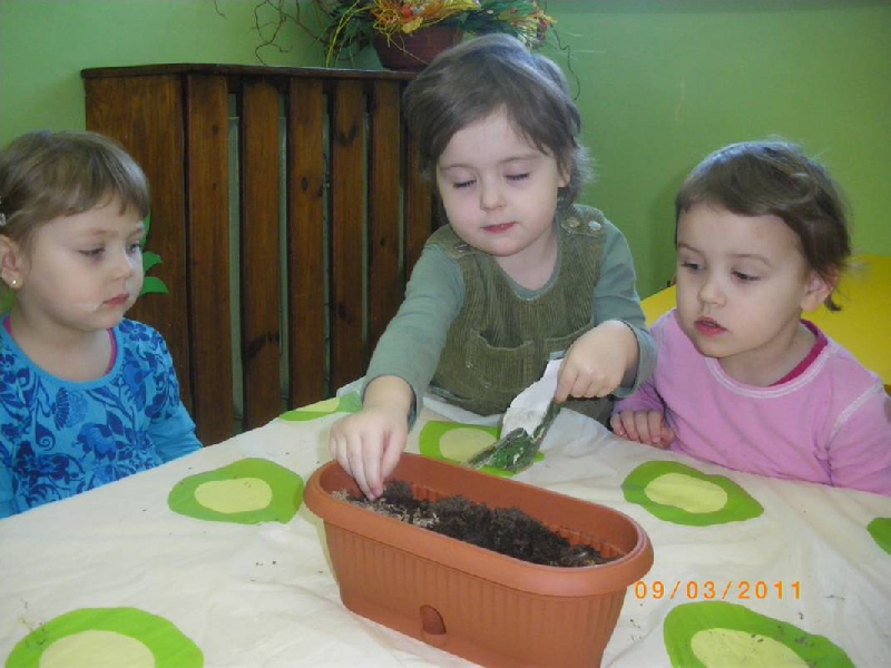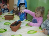 Na zajęciach Maluszki posiały nasiona różnych warzyw: fasolę, marchewkę i rzodkiewkę. Wspólna praca sprawiła wiele radości i satysfakcji. Teraz każdego dnia dzieci będą oglądać swoje rośliny- starając się dbać o nie, podlewać i pięlęgnować. Ciekawe co z nich wyrośnie?