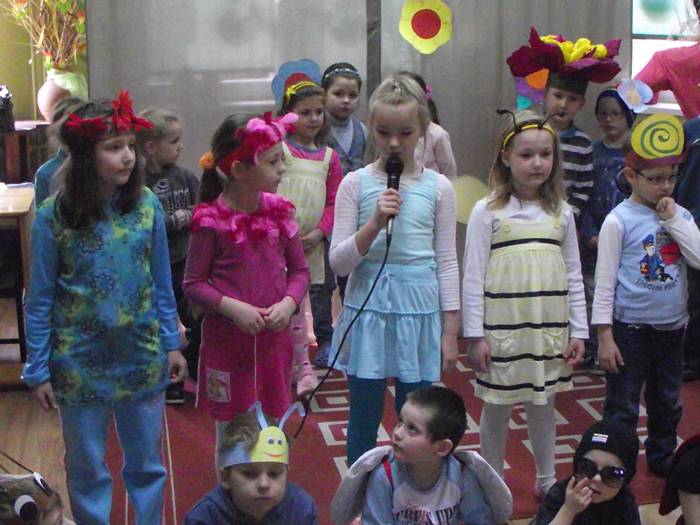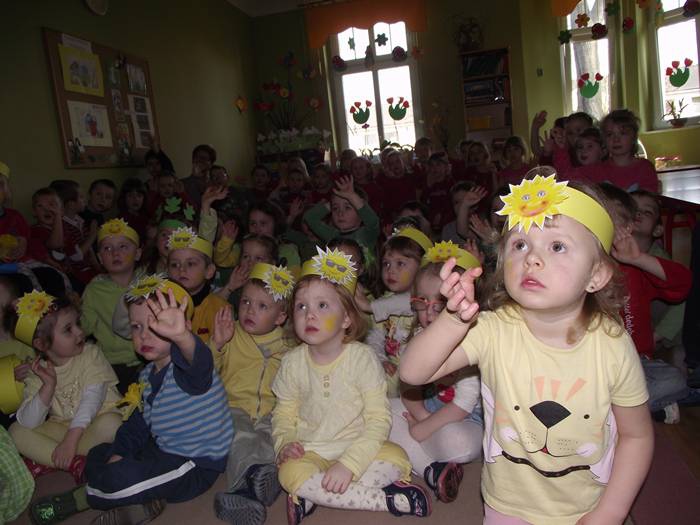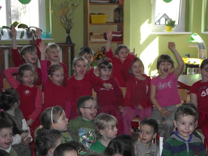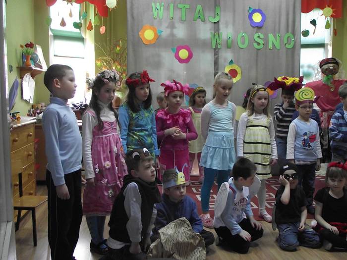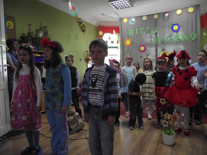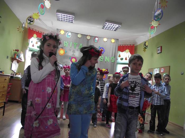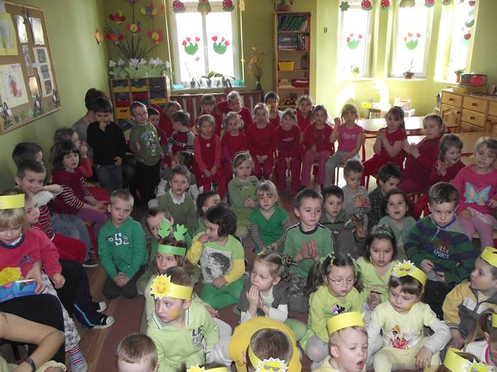 Dziś w przedszkolu królowały kolory, wszystkie grupy przygotowały się na powitanie Wiosny. Program artystyczny zaprezentowała grupa IV. Mamy nadzieję, że od dziś na dworze też będzie coraz bardziej kolorowo.